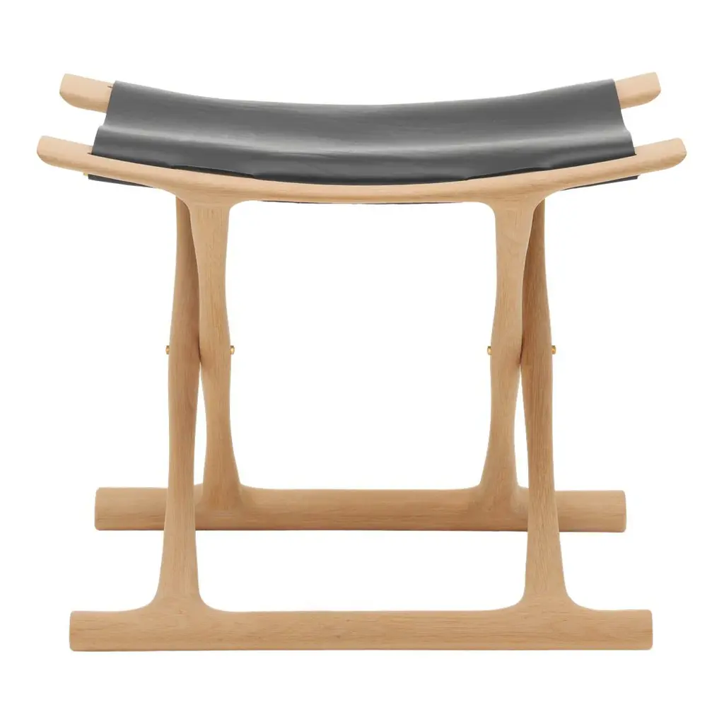 Danish Modern design inspired by ancient Egypt. The Carl Hansen OW2000 Egyptian Folding Chair has a dignified, throne-like look that you can bring with you wherever you need it. It features a smooth panel of butt leather stretched across a collapsible frame of solid wood. Designed by Ole Wanscher in 1957.