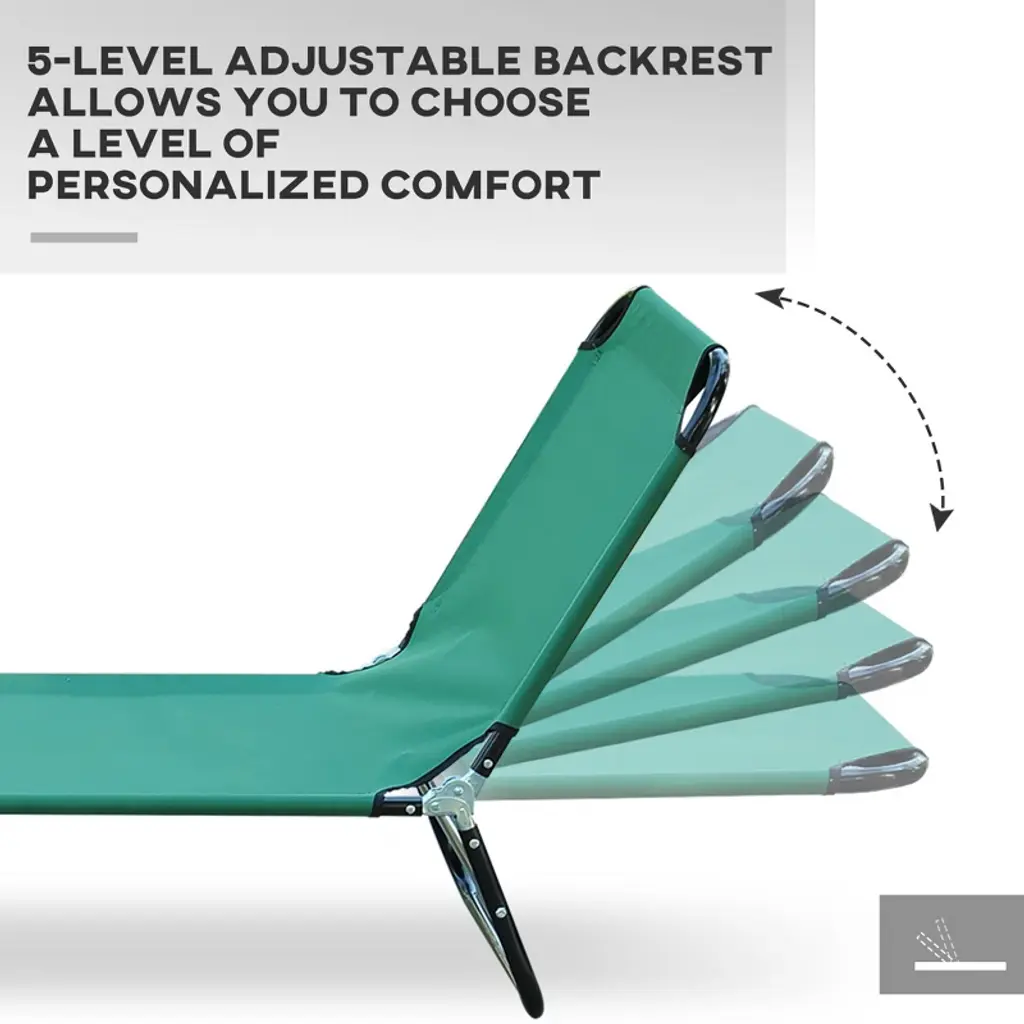 Paged Folding Camping Chairs Outdoor Sun Tanning Chairs With 5-level Reclining Back For Camping, Beach, Yard, Picnics, Patio, Green
