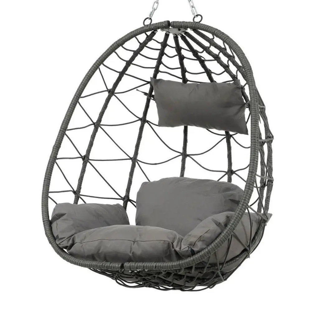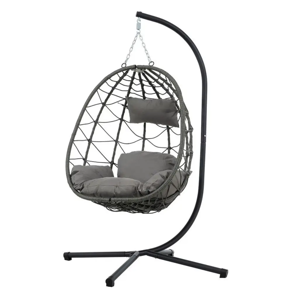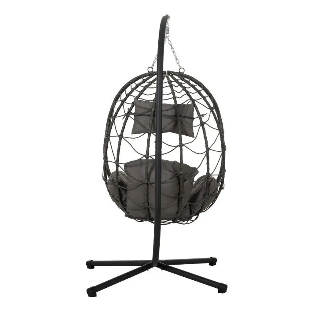 Paged Indoor Outdoor Pe Wicker Swing Chair With Foldable Design And Stand,egg Chair For Patio,porch,garden,dark Gray