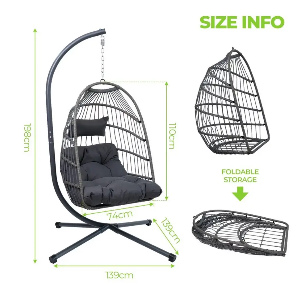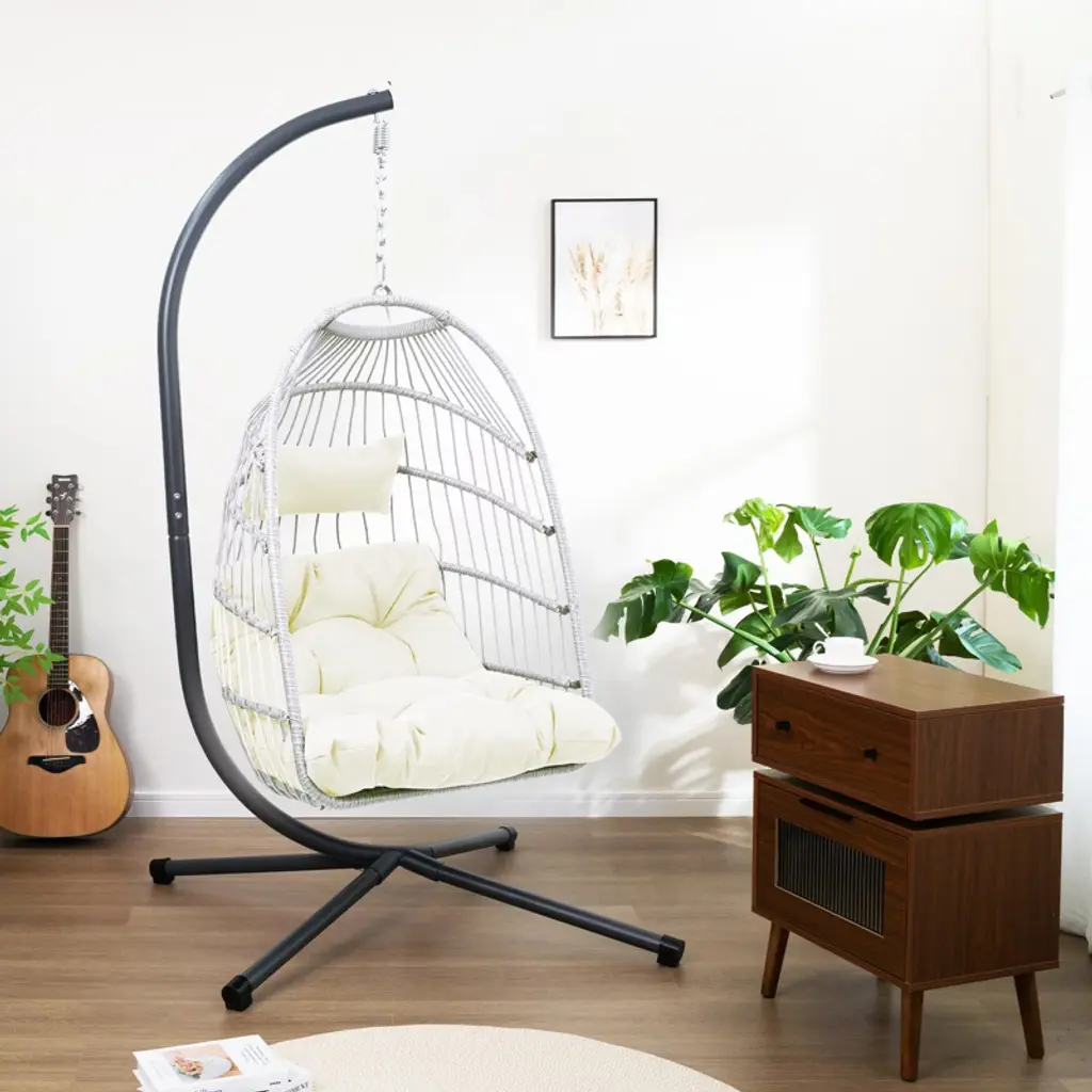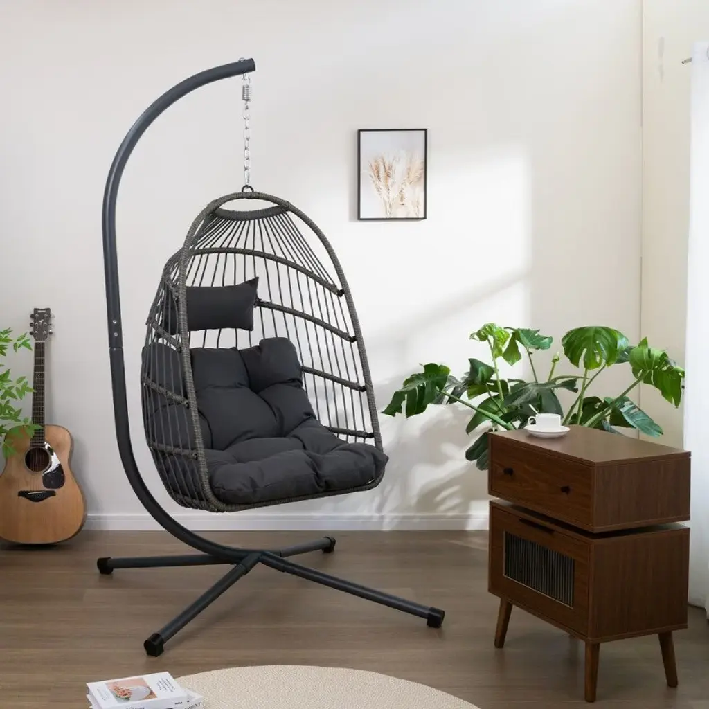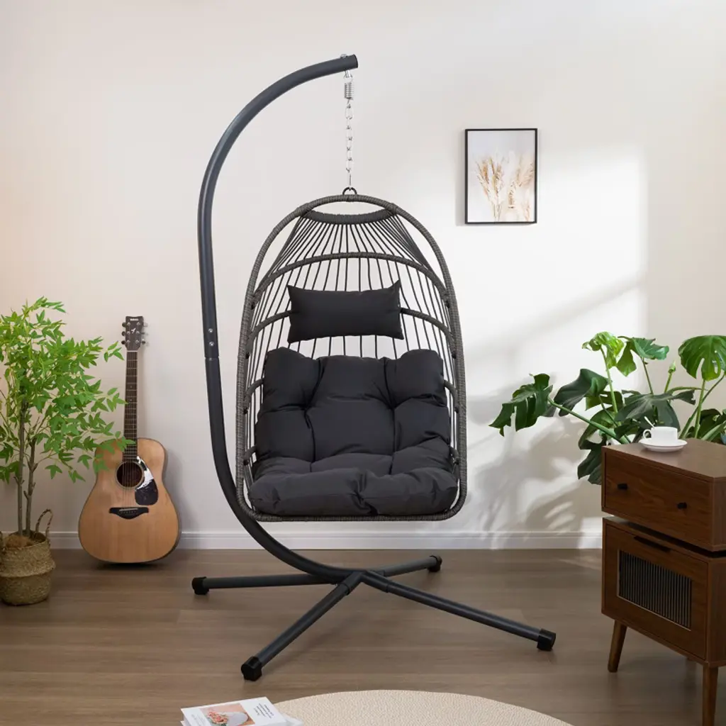 Paged Indoor Outdoor Swing Chair With Foldable Design And Chains,egg Chair For Patio,porch,garden,black+gray
