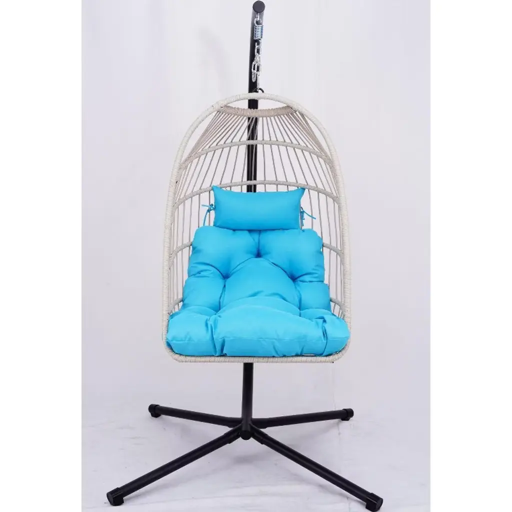 Paged Indoor Outdoor Swing Chair With Foldable Design And Chains,egg Chair For Patio,porch,garden,blue+gray