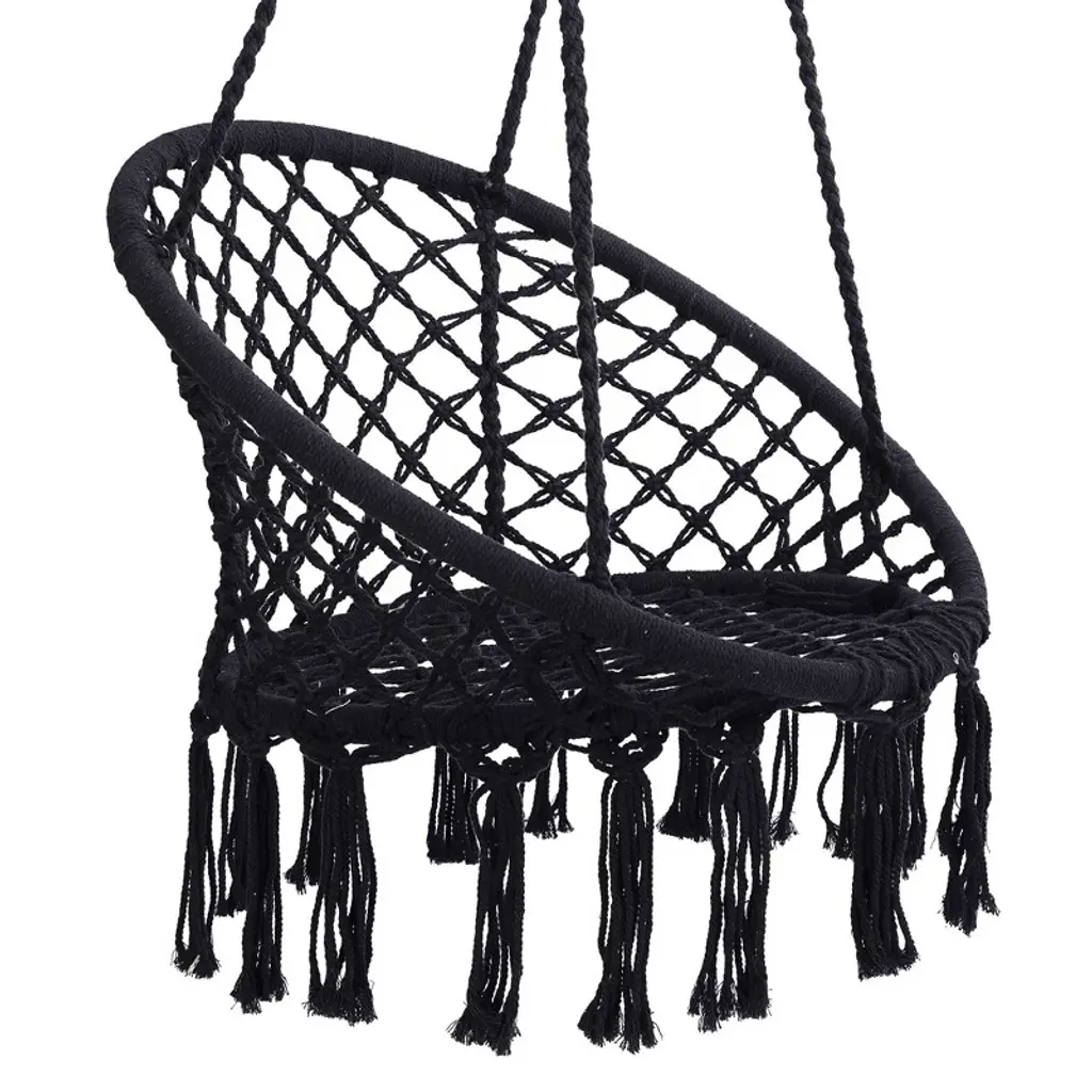 Paged Swing Chair Outdoor, Hammock Chair Macrame Swing, Max 330 Lbs Hanging Cotton Rope Hammock Swing Chair For Indoor And Outdoor, Black