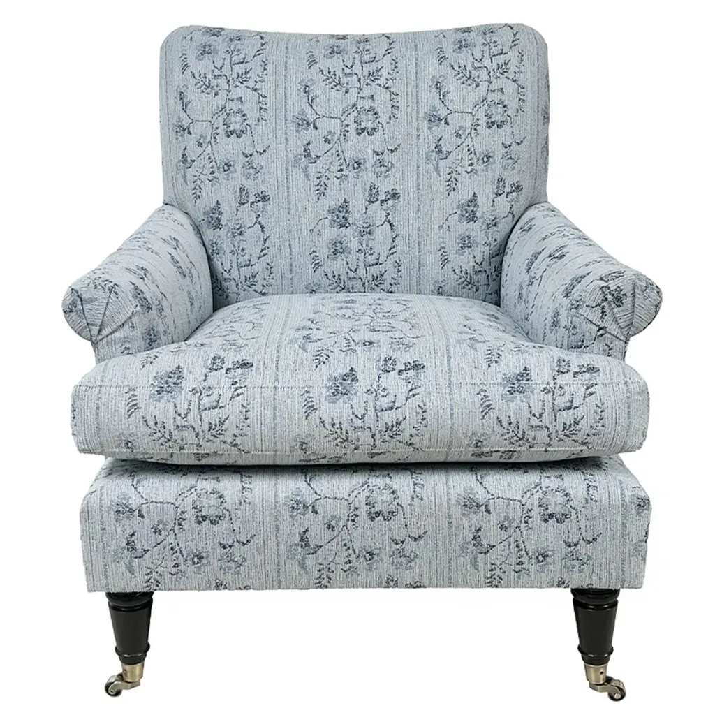 Interior Designer Kim Salmela introduces her debut textiles collection with this exquisite chair. Crafted in Southern California, it boasts a tight back and a generously cushioned seat, filled with luxurious feather-and-down for ultimate comfort.
