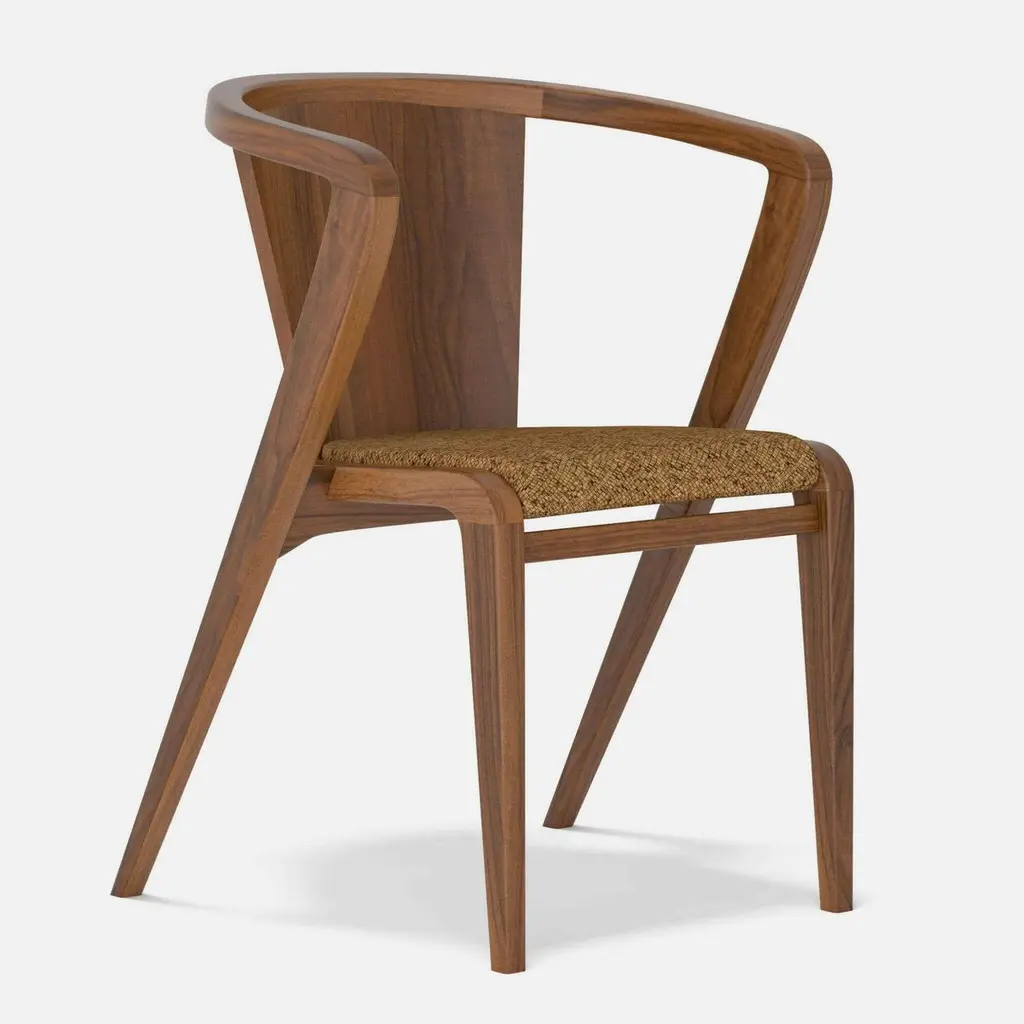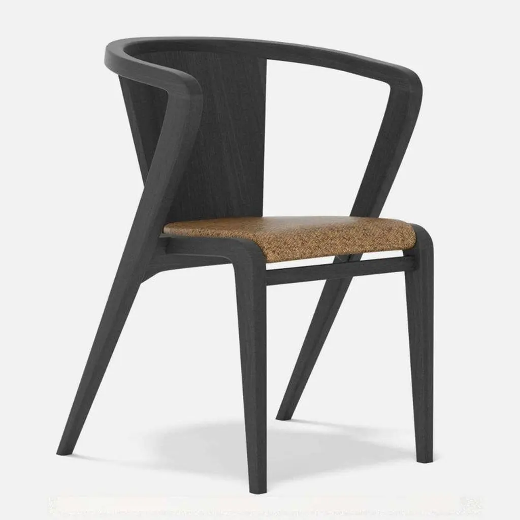 Painted ash and fabric Portuguese roots chair by Alexandre CaldasDimensions: W 40 x D 39 x H 73 cmMaterials: Solid ashwood, fabricSeat available in fabric, velvet, natural leather.Portuguese roots chair, was inspired by its original model from 1950, created by Gonçalo Rodrigues dos Santos and designed today by Alexandre Caldas. An exclusive wood chair design in solid wood and natural oil.The history of this wooden chair with arms goes back to the post-war era, the late forties (1940s).The chair was original design in metal for outdoors major cafés in Lisbon and subsequently to the rest of the country.After that, the chair had it's ups and downs due to the market opening, plastic furniture and other products.Although the original model as a long time living among Portuguese people, however, for the Rest of the World, this chair was unknown since 2013, the year that AROUNDtheTREE was born.Our values lie in the respect, protection and sense of continuity towards our natural resources, our roots must be preserved, maintained and cared so they can keep inspiring us as well as our future generations.We are committed to be a sustainable brand, we feel obligated to respect the purity of the materials we use in our pieces giving them the importance they deserve and making products that can be cared through generations with maintenance and repair. Portugal has centuries of history in woodworking, we draw honoring that tradition and combining it with state-of-the-art technologies, always trying to produce furniture with a high-level practical value and connecting our ancestry’s generations with the ones to come.Every masterpiece we make represents a tribute to the materials we use. This vow of respect represents the value of our collection and makes it possible for us to ensure the quality of our pieces, giving us the confidence to mark them as “Made in Portugal” with the distinctiveness it deserves.