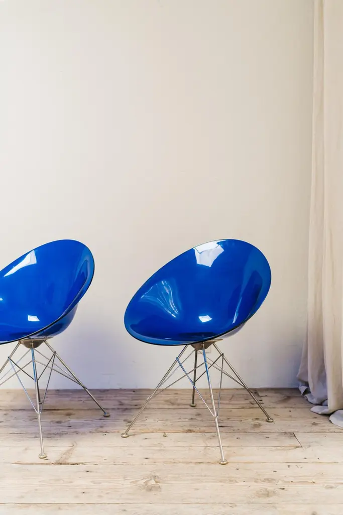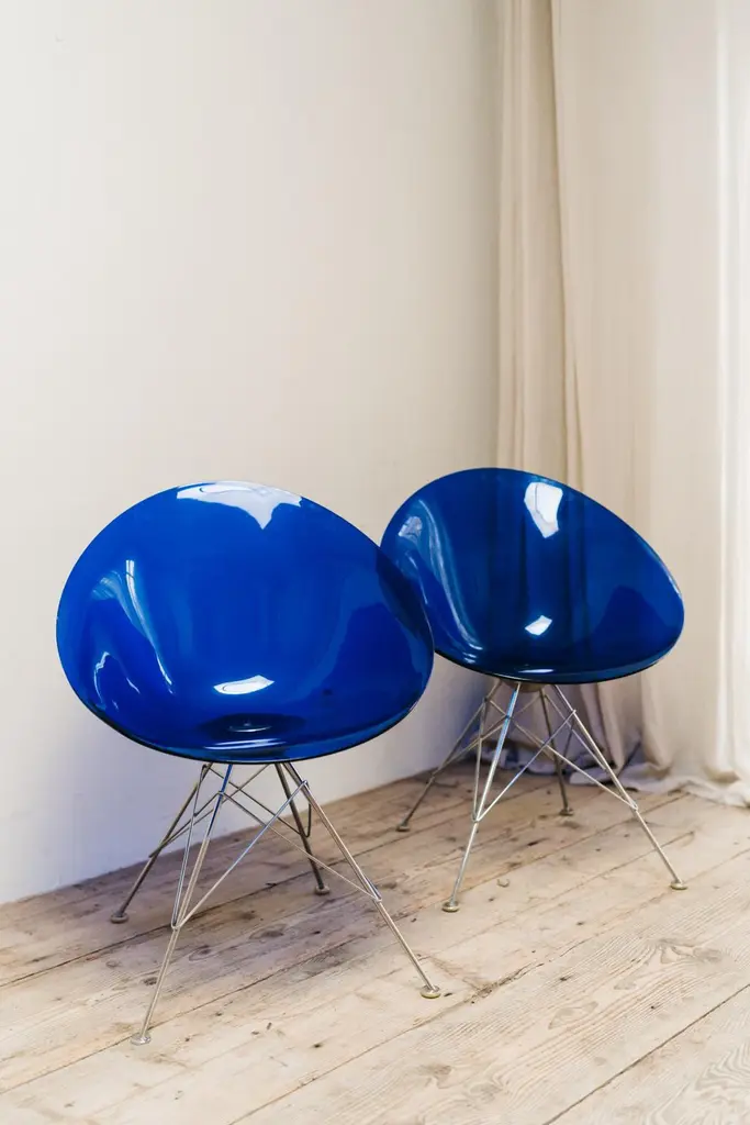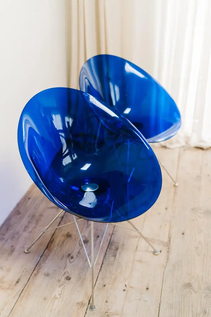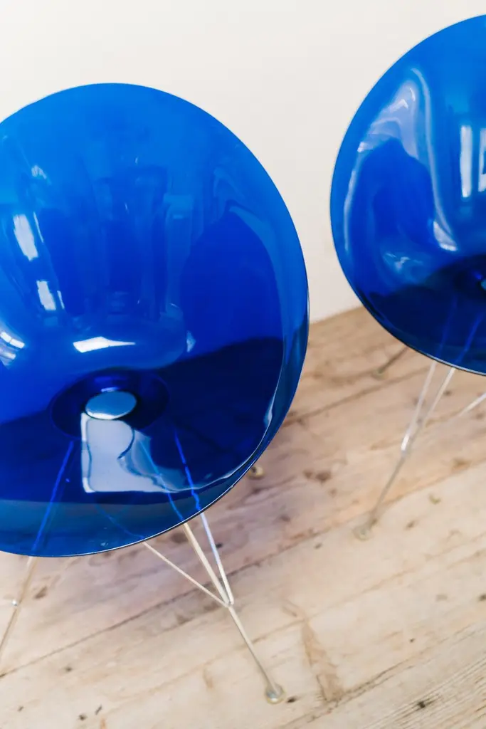 Pair Of Blue Plexi Ero Chairs By Philippe Starck For Kartell