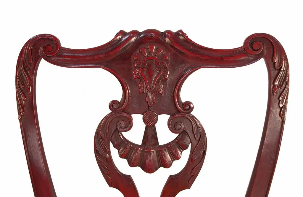 Pair Of Chippendale Style Chairs In Red Lacquered Wood, Circa 1880