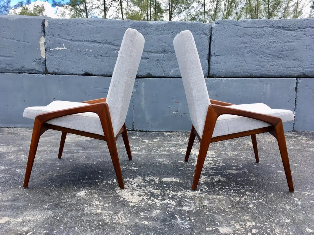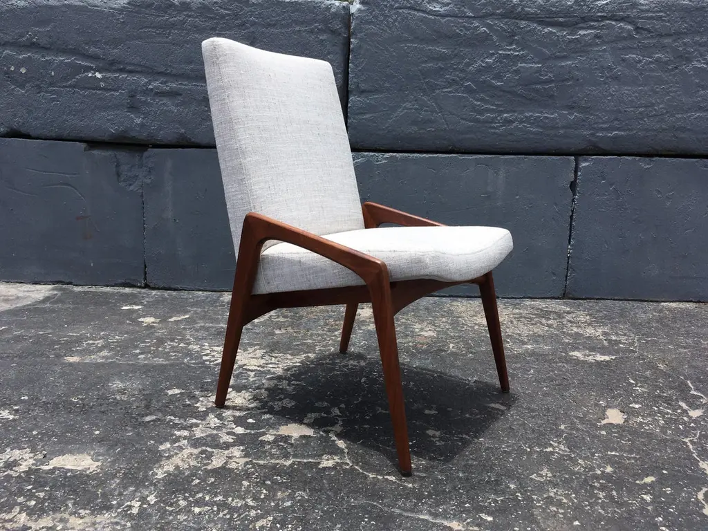 Beautiful pair of Mid-Century Modern chairs, very much in the style of Gio Ponti. Excellent condition, four chairs available.