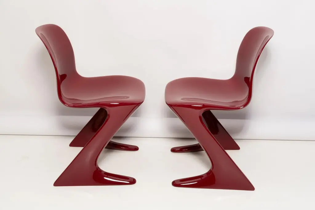 Pair Of Dark Red Wine Kangaroo Chairs Designed By Ernst Moeckl, Germany, 1968