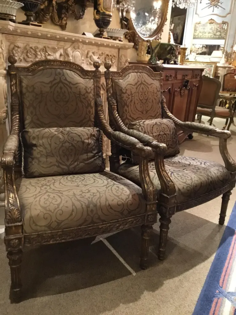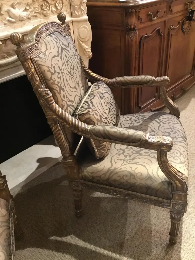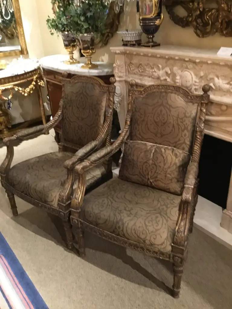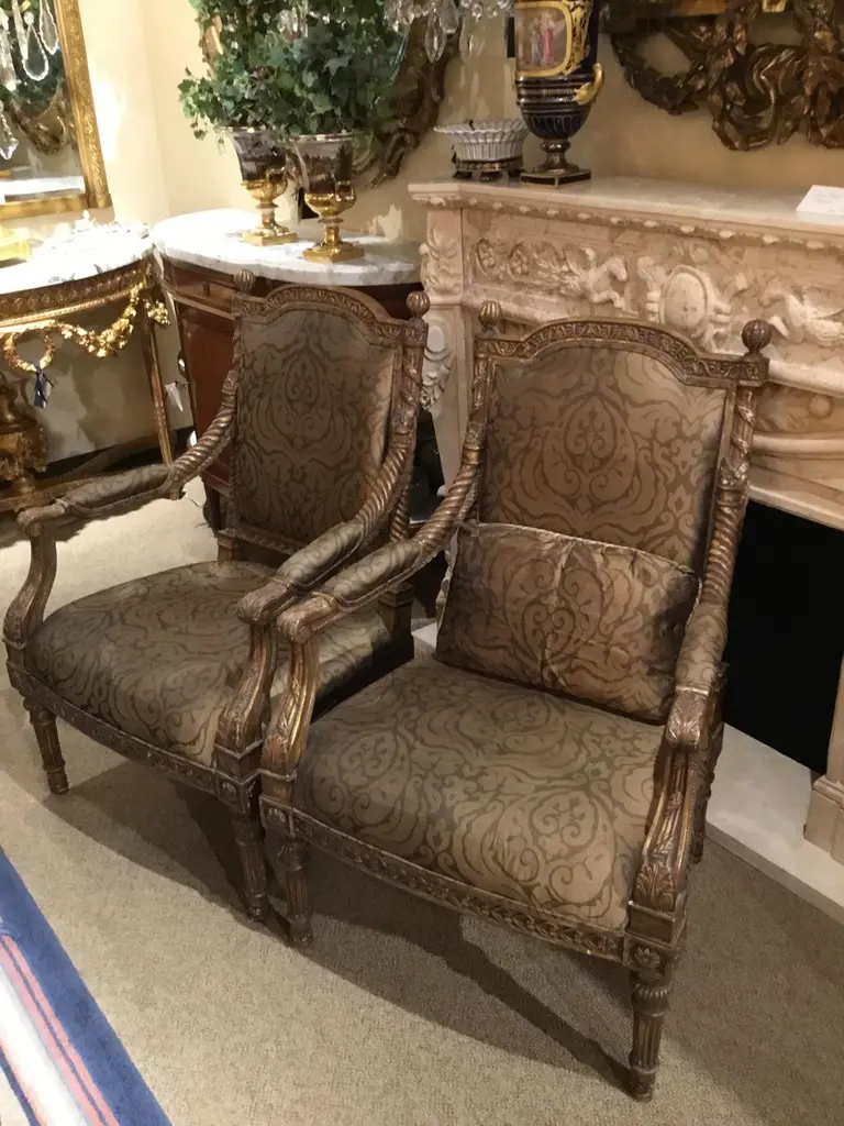 Pair Of Louis Xvi Style Chairs With Silk Upholstery