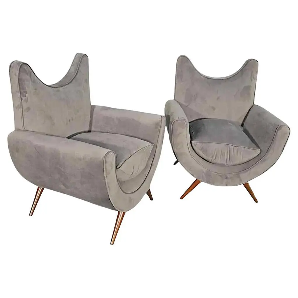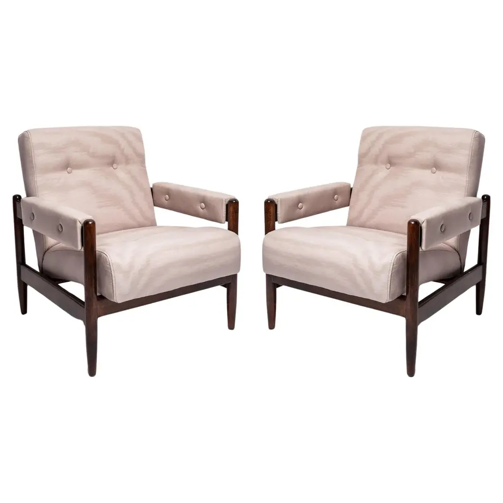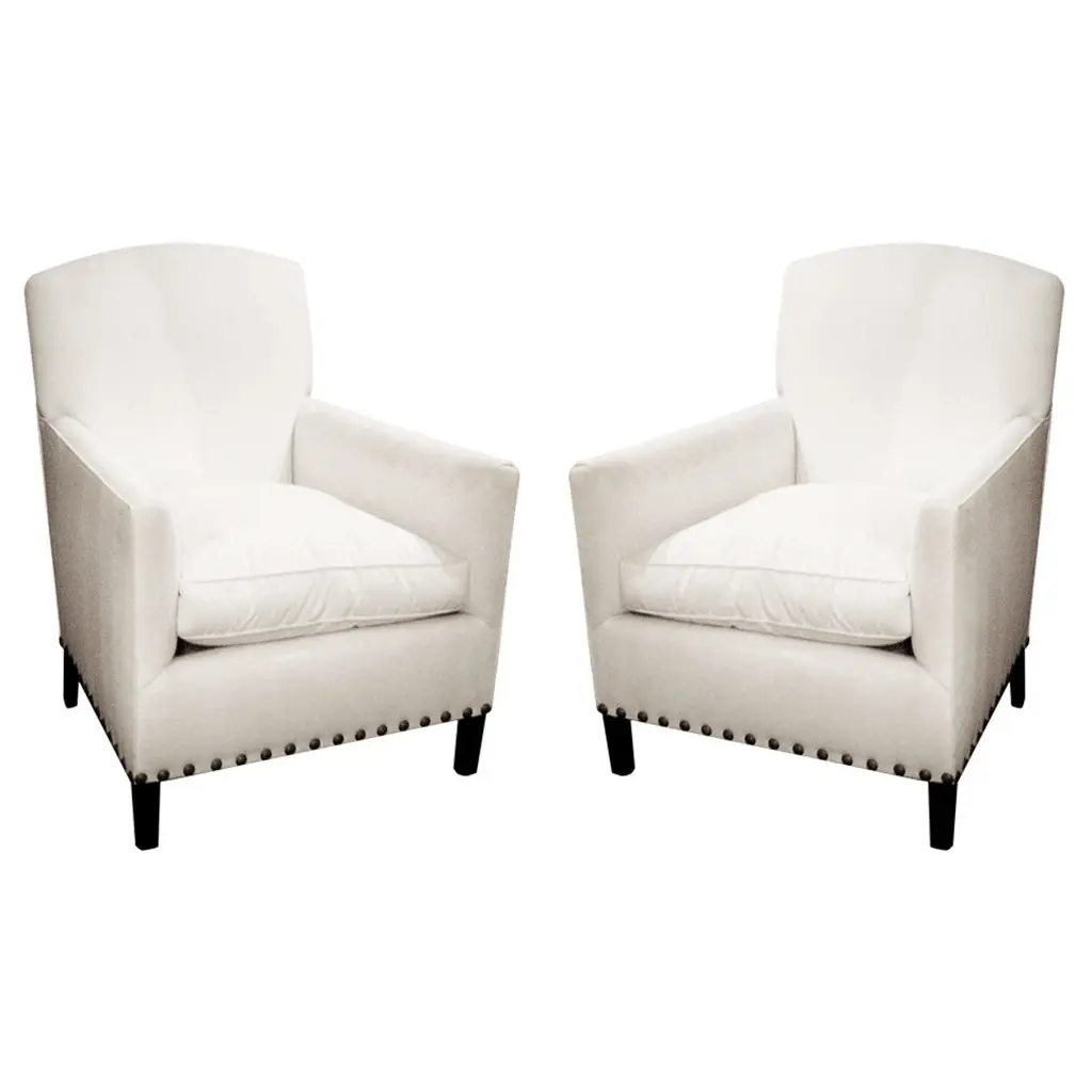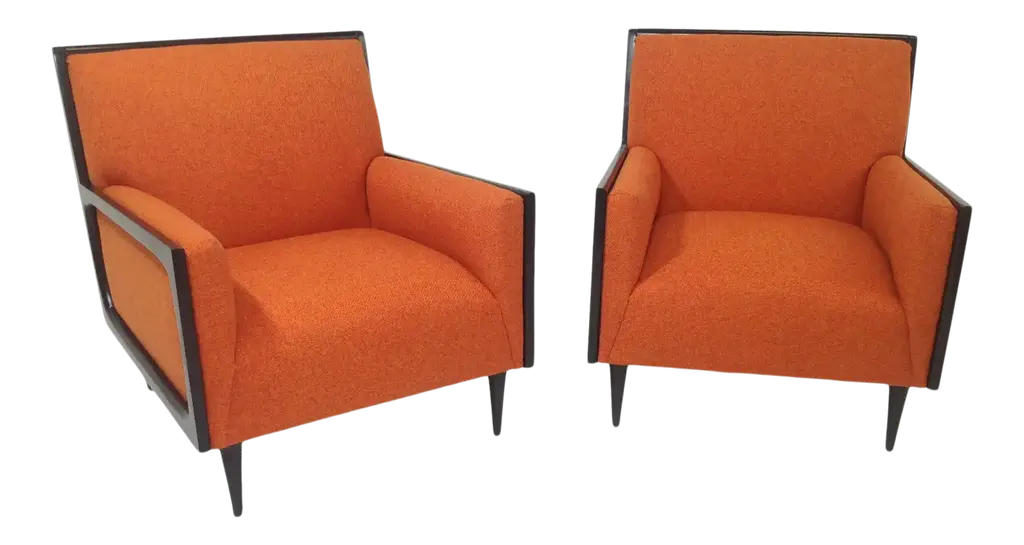 Pair Of T.h. Robsjohn-Gibbings For Widdicomb High Back Club Chairs Ebonized Base