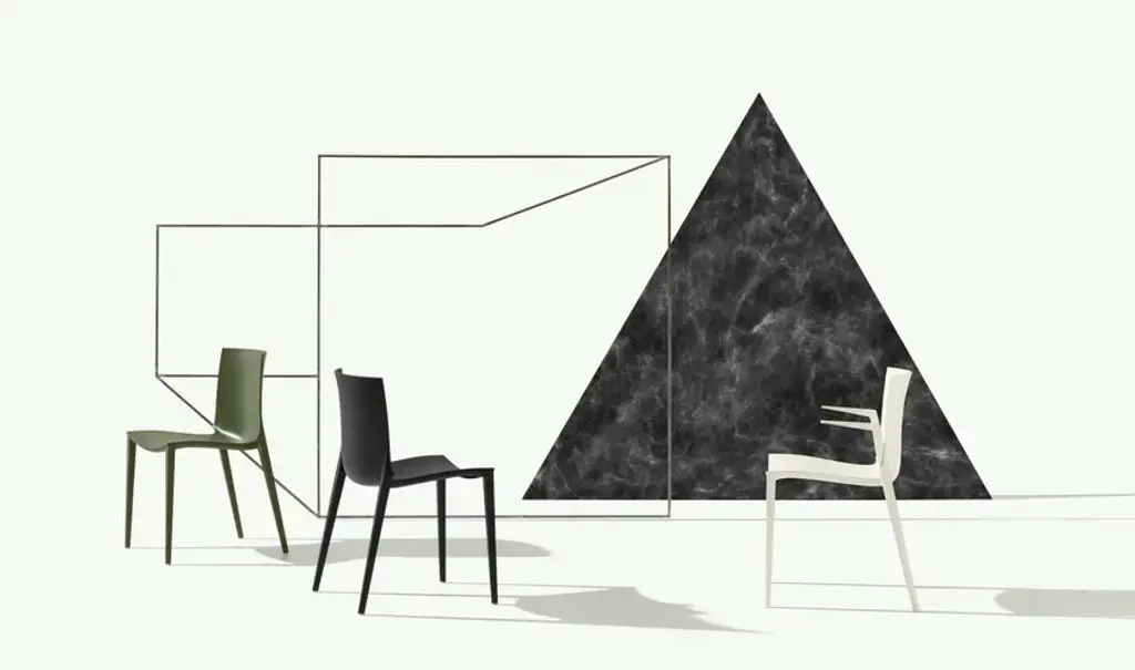 Monobloc armchair in polypropylene made using the injected air-moulding technology.