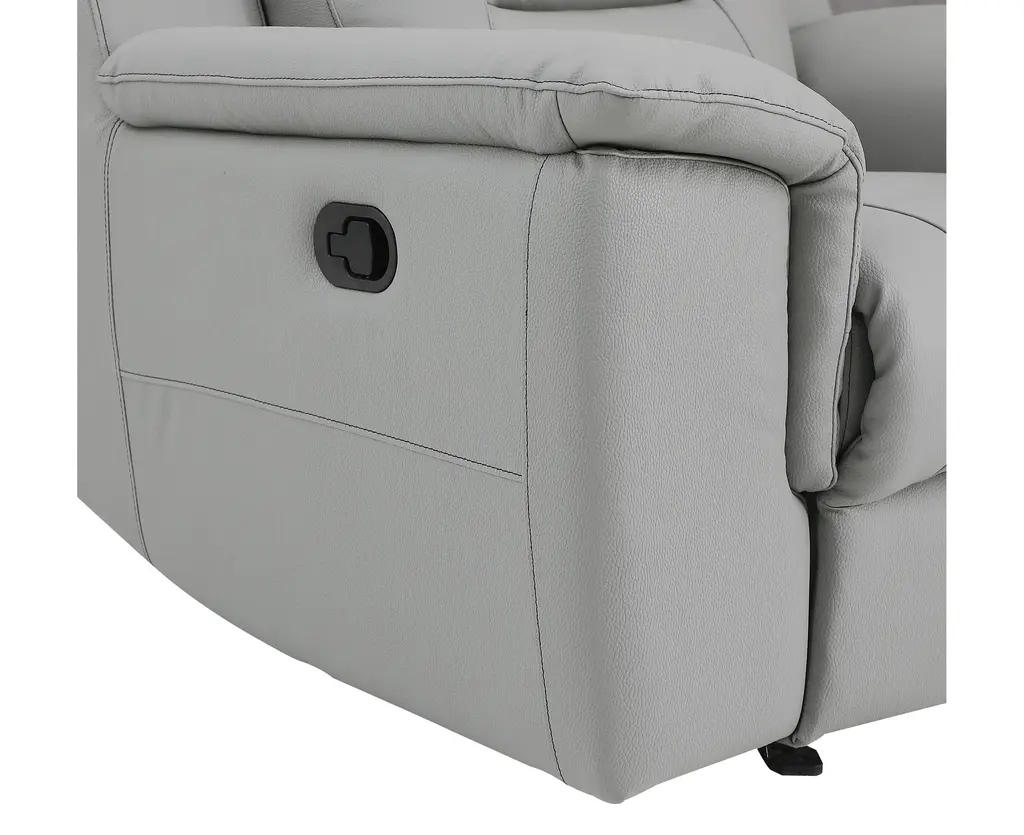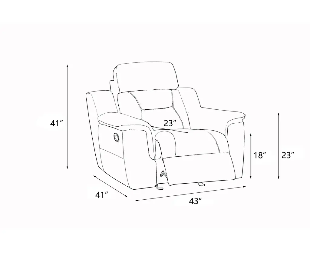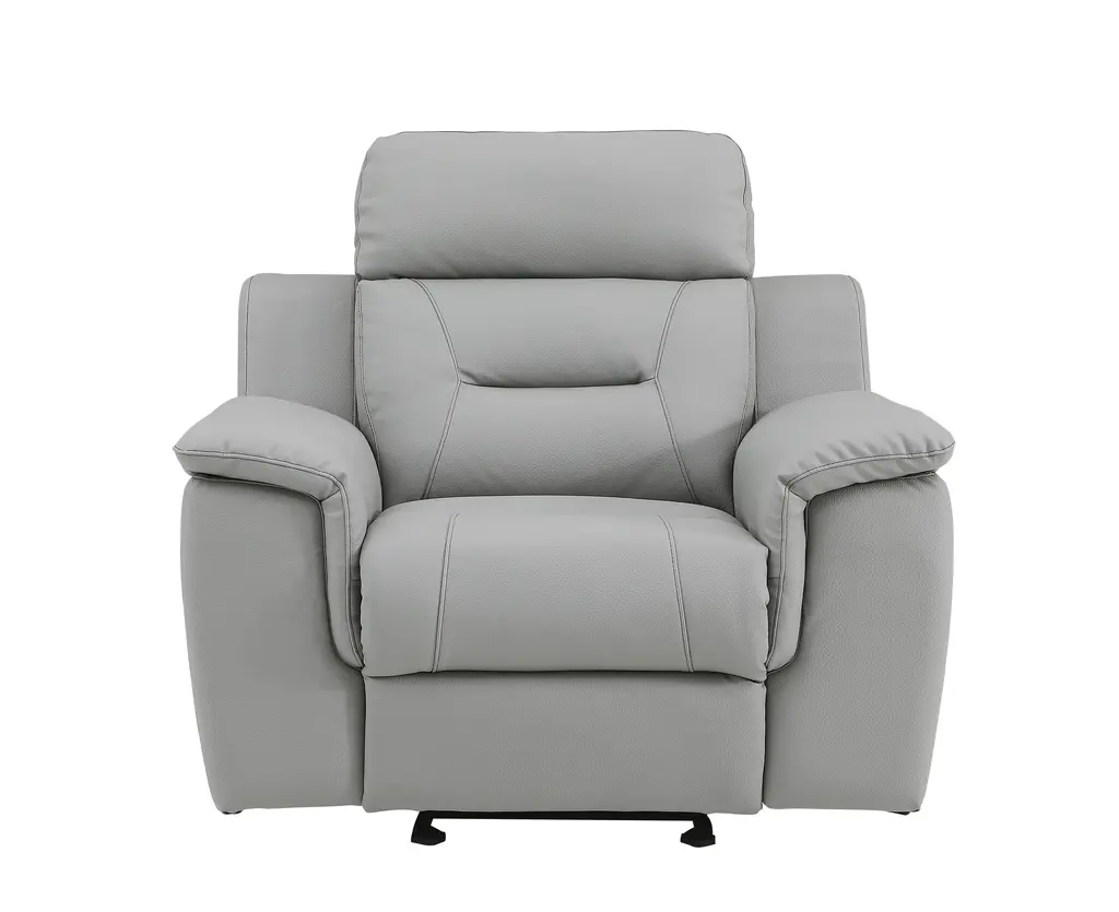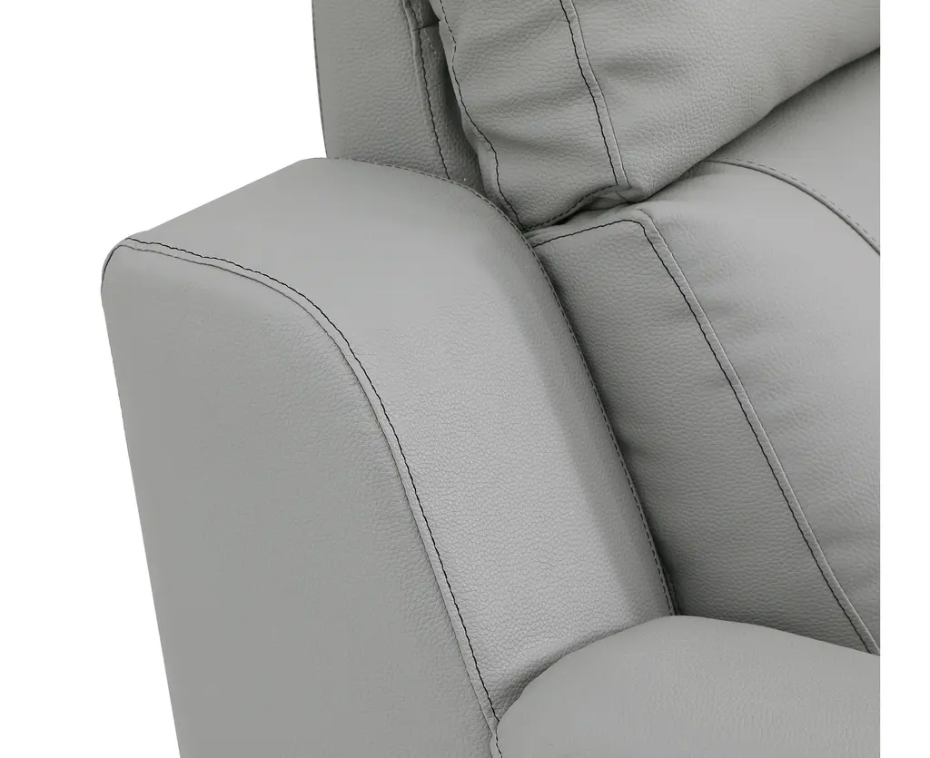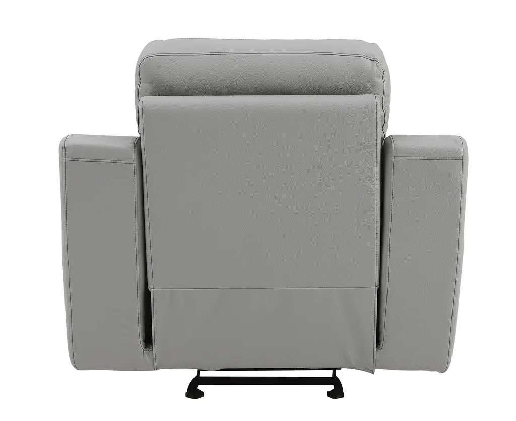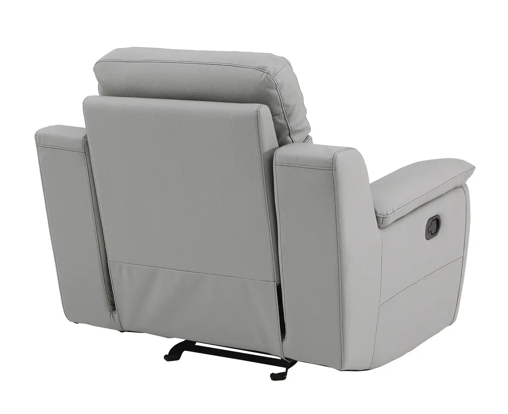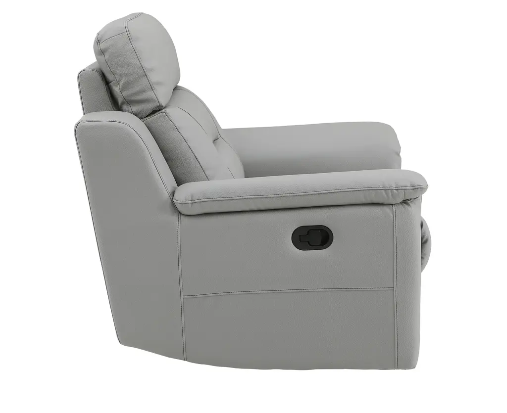The Palermo Contemporary Gray Leather Gel / Match Recliner Chair is elegantly appointed modern living area Chair that will help you create an oasis of comfort and relaxation in your home. This leather gel Chair with a low-profile modern style is surely yours for many years to come. Palermo Contemporary Gray Leather Gel / Match Recliner Chair has a quiet modern appeal which will easily blend with any contemporary home setting. Stylish and at the same time warm and inviting, this Leather Gel modern living room Chair with recliners would be a wonderful, long lasting addition to any home. Palermo modern living room Chair is made with use of the last technologies and of modern materials, so that it would look good and be maximally functional. This gorgeous Gray Leather Gel Chair provides a striking modern look when accented with the metal hardware. You will never want to leave the comfort of your living area again with the addition of our sturdy Palermo Contemporary Gray Leather Gel / Match Recliner Chair.Upholstery: Leather Gel / MatchReclines: YesFrame Construction: Wood And PlywoodSeat Construction: No Sag/Coil With FoamFixed Seat: YesFoam Depth: Seats 2.4 / Armrest And Footrest 2.0Back Construction: Webbing with fiberSewing Type: Matching StitchAssembly Required: None