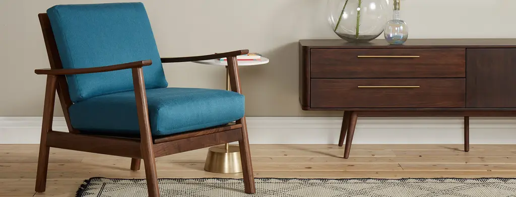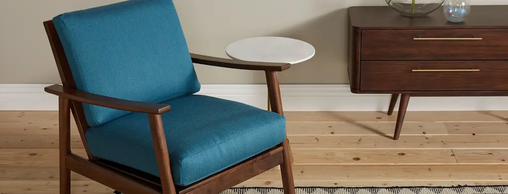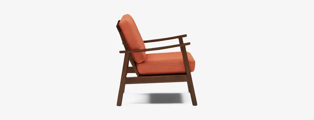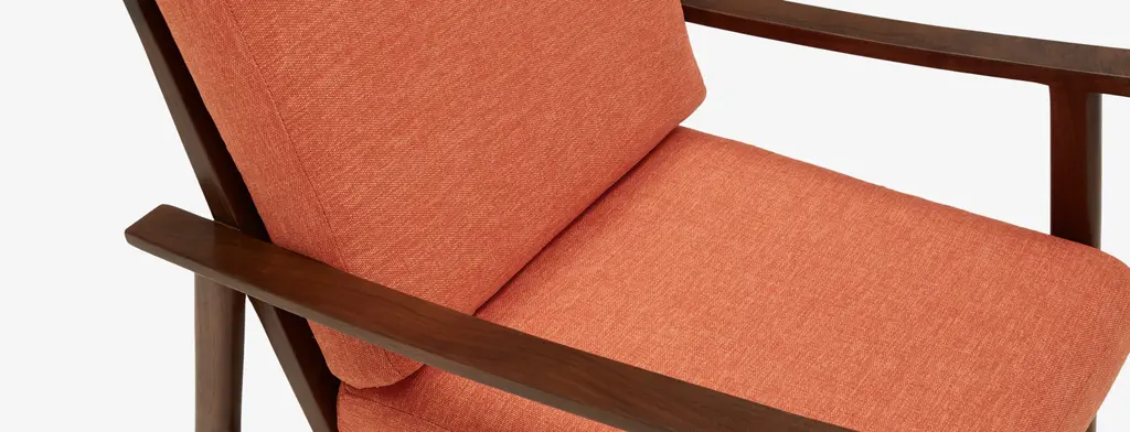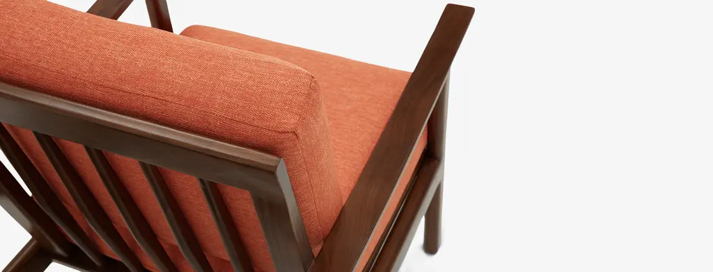 Recalling signature Mid-century modern designs, this sculptural armchair is an everyday work of handcrafted art. Make a meaningful first impression in your home with the Paley chair. From its elegant upward curving wood arms and plush cushioned seat casually slated back, it’s the ultimate Mid-century echo with a contemporary tone. Embrace its design charms in your personal space, either as a welcoming foyer piece or a family room fixture.