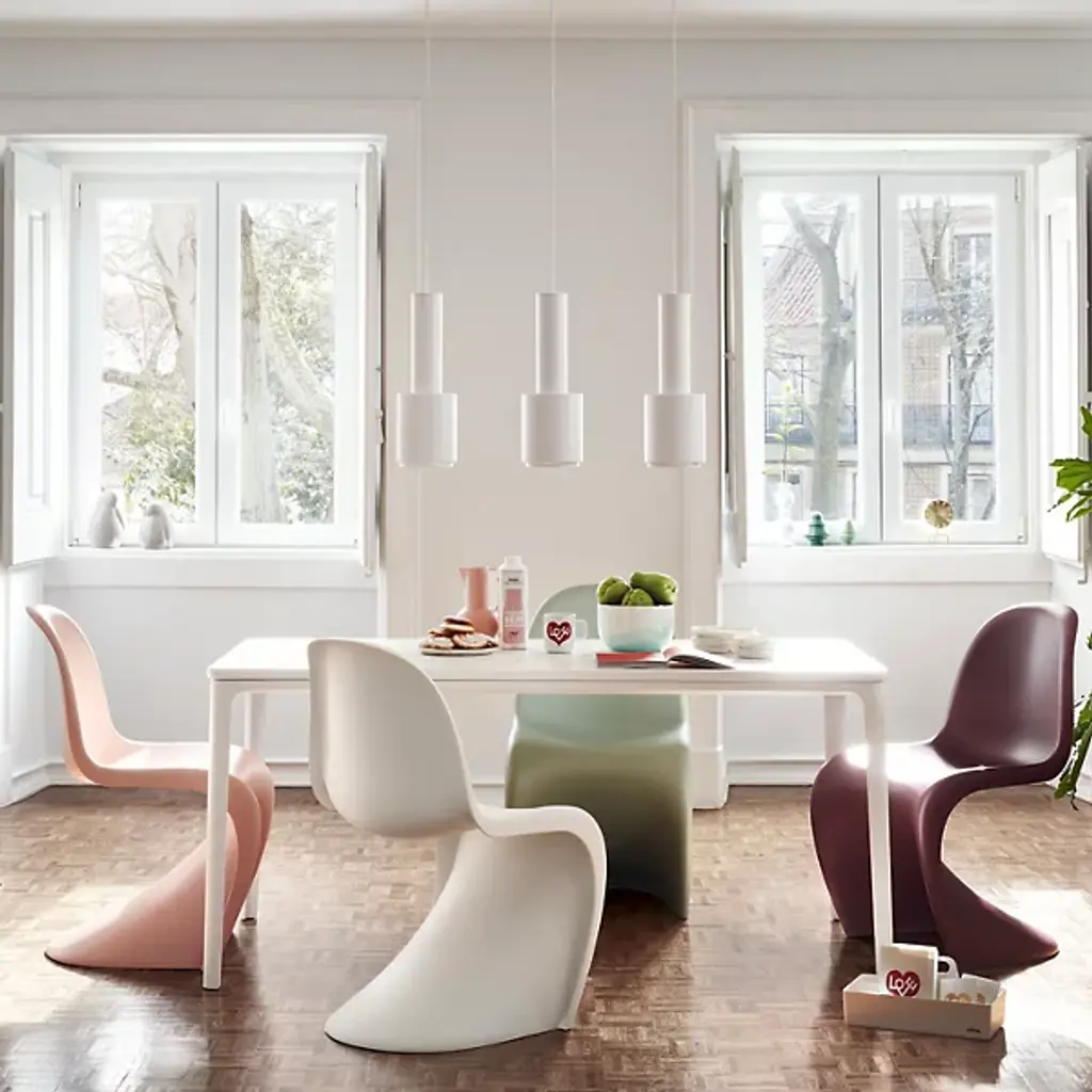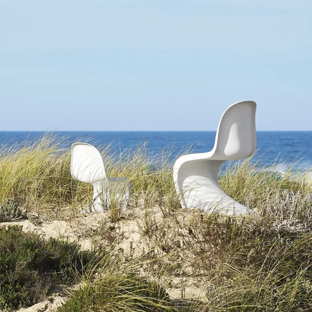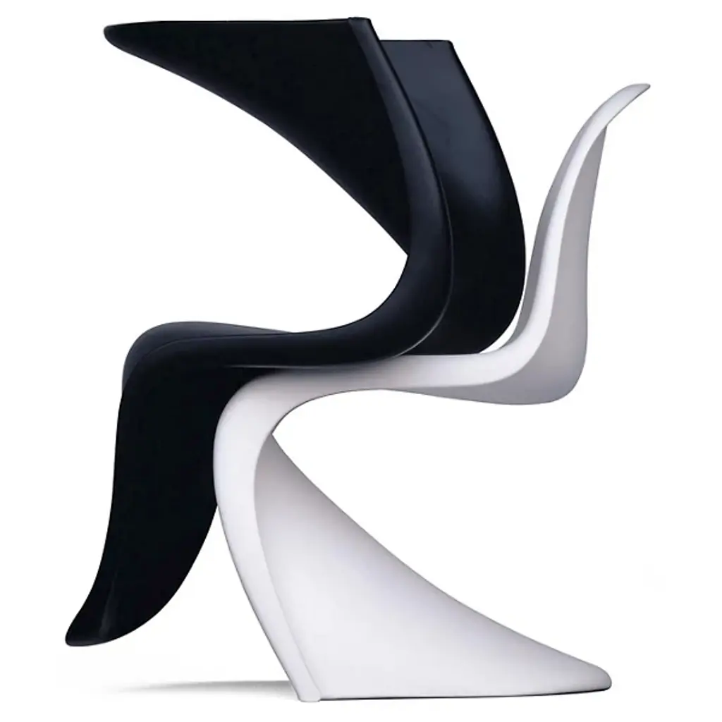 A 1999 revision to the classic Panton chair--and the last version authorized by Verner Panton. The plastic in this model has been completely re-engineered and molded out of a single piece of dyed polypropylene. It also has a matte surface (the 1959/60 original version has a glossy finish). Finally...a Panton chair that realized one of its creator's primary objectives: a plastic chair as an affordable industrial product.