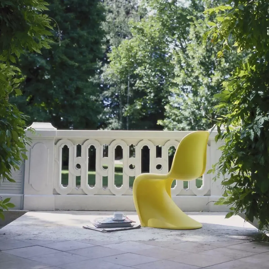 A 1999 revision to the classic Panton chair--and the last version authorized by Verner Panton. The plastic in this model has been completely re-engineered and molded out of a single piece of dyed polypropylene. It also has a matte surface (the 1959/60 original version has a glossy finish). Finally...a Panton chair that realized one of its creator's primary objectives: a plastic chair as an affordable industrial product.