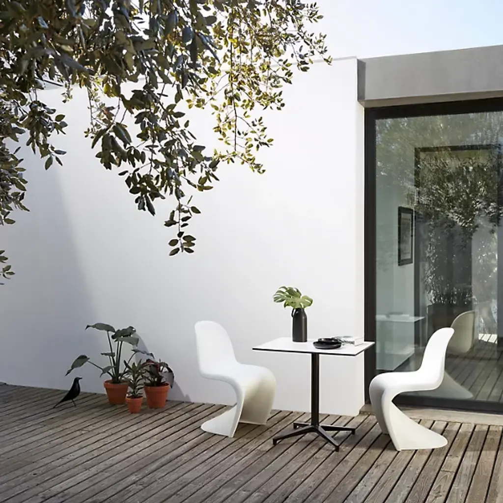 A 1999 revision to the classic Panton chair--and the last version authorized by Verner Panton. The plastic in this model has been completely re-engineered and molded out of a single piece of dyed polypropylene. It also has a matte surface (the 1959/60 original version has a glossy finish). Finally...a Panton chair that realized one of its creator's primary objectives: a plastic chair as an affordable industrial product.
