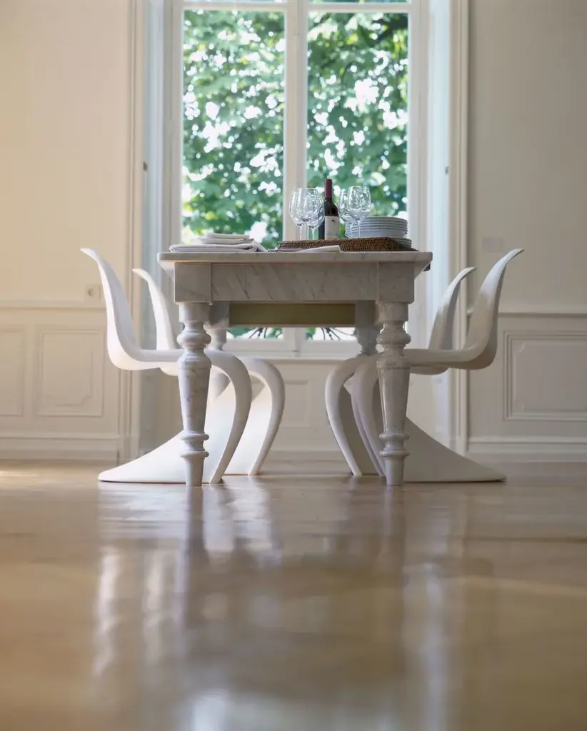 The Panton Chair is a classic in the history of furniture design. Conceived by Verner Panton in 1960, the chair was developed for serial production in collaboration with Vitra (1967). It was the fi rst chair to be manufactured completely out of plastic in one single piece. Since its introduction to the market, it has advanced through several production phases. Only since 1999 has it been possible to produce the chair in accordance with its original conception – out of durable, dyedthrough plastic with a lustrous matte finish.The comfort of this chair results from the combination of a cantilever structure with an anthropomorphic shape and a slightly flexible material. It can be used individually or in groups and is suited for indoor and outdoor environments. The Panton Chair has received numerous international design awards and is represented in the collections of many prominent museums. Its expressive shape has made it an icon of the twentieth century.Materials:- Material: dyed-through polypropylene. Matte finish. Also suited for outdoor use.- Note: special additives retard the fading of colours due to UV radiation. However, if the chair is exposed to sunlight for prolonged periods, the colour may change over time. We recommend limited exposure to sunlight.