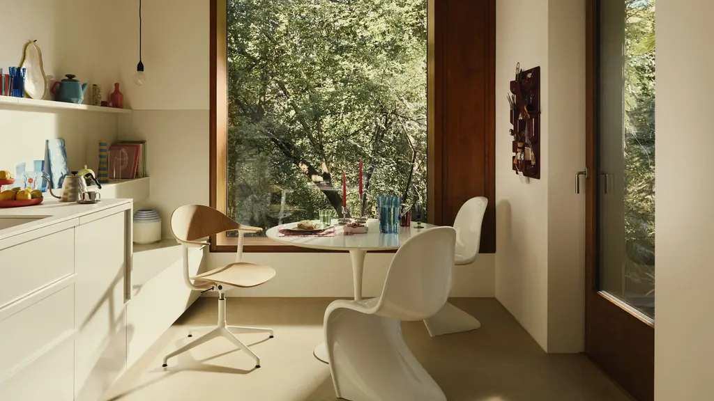 Having conceived a design for an all-plastic chair made from one piece, it took Verner Panton several years to find a manufacturer. He first came into contact with Vitra in 1963 and together they developed the Panton Chair, which was presented in 1967. It was hailed as a sensation and received numerous prizes. The original version of the chair with a glossy lacquer finish is still marketed today under the name Panton Chair Classic. Referring to the 50th anniversary of the Panton Chair, Marianne Panton talks about living with her husband, the creation of the chair icon and the two limited editions Panton Chrome and Panton Glow from 2018.