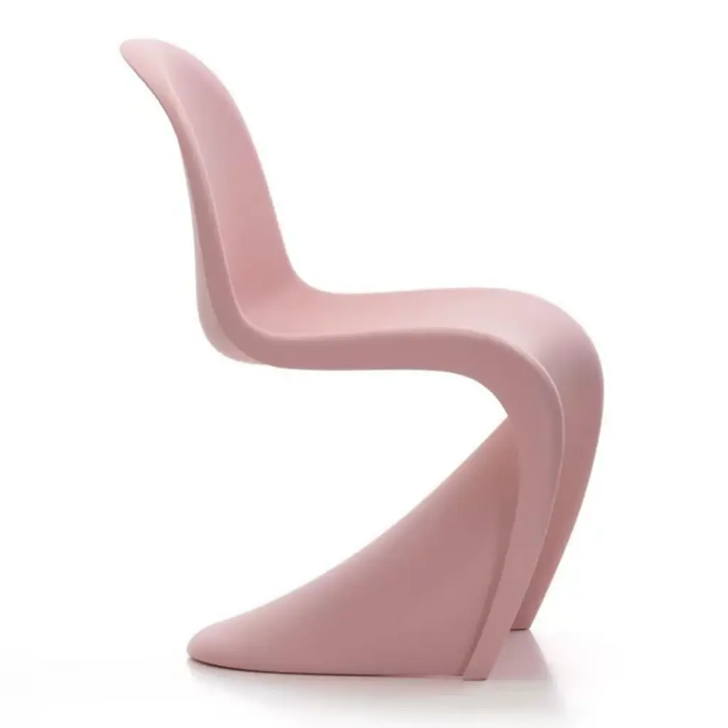 The iconic form and bright colors of the Panton Chair has always been favored by children. Now, it's available in a size they can appreciate as well. The Vitra Panton Junior Chair by Verner Panton is a proportionately (25%) smaller version of the original, made out of a single piece of dyed polypropylene.