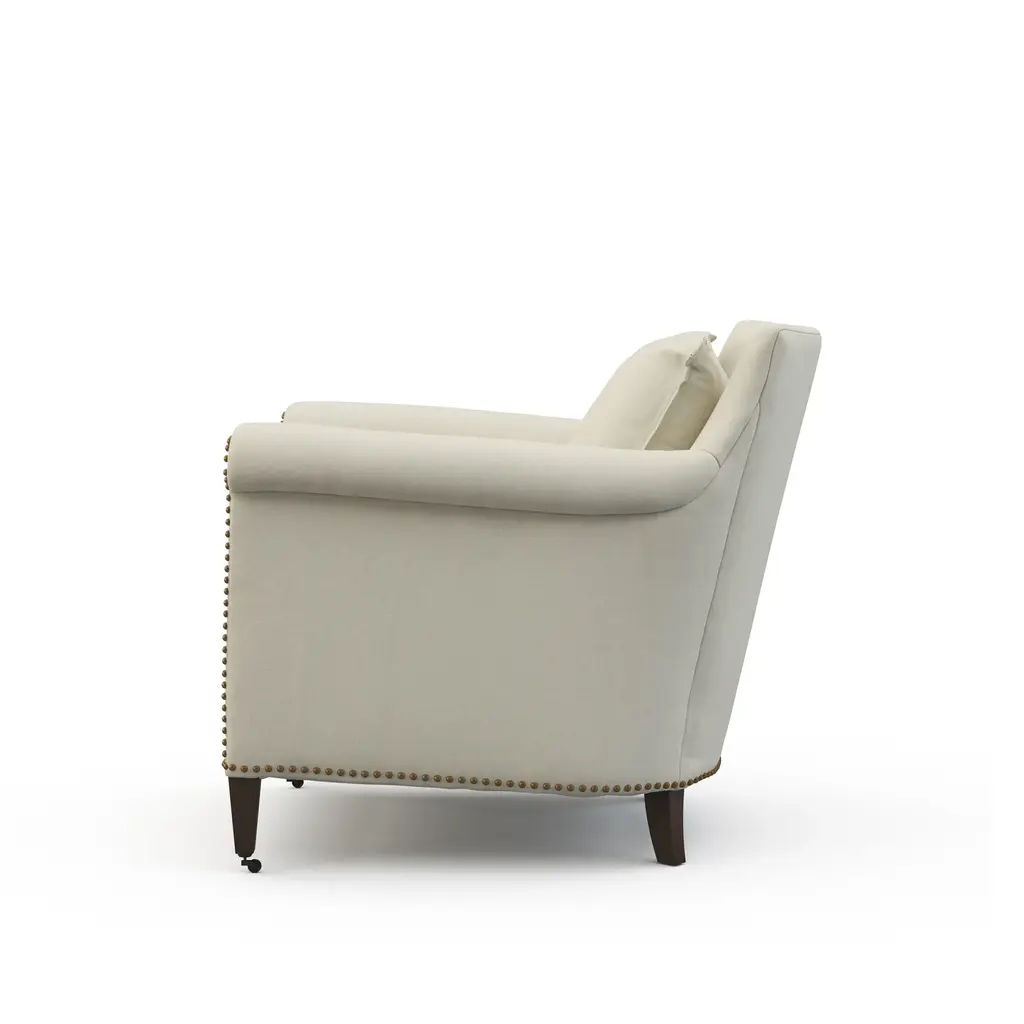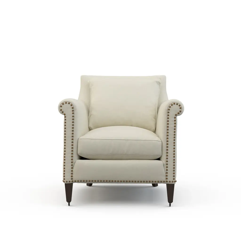 The Paris collection also includes a sofa and a loveseat (sold separately). Ships In 8-10 Weeks Features 1-FN nail trim One loose back pillow One loose seat cushion As Shown Fabric: Rayburn Oatmeal As Shown Finish: Modern Elm If you choose to purchase COM, once you have placed your order a customer service rep will contact you regarding where to send your fabric. Please note that current lead time is 17-19 weeks once your fabric arrives at the factory, and if unused fabric is under 1.5 yards, it cannot be sent back to you.This product can be special ordered in additional fabrics, leathers, finishes, and cushion fillings. Click here to email us for for additional information about special ordering.This image is for illustrative purposes only. The colors shown are accurate within the constraints of lighting, photography, and the color accuracy of your screen.
