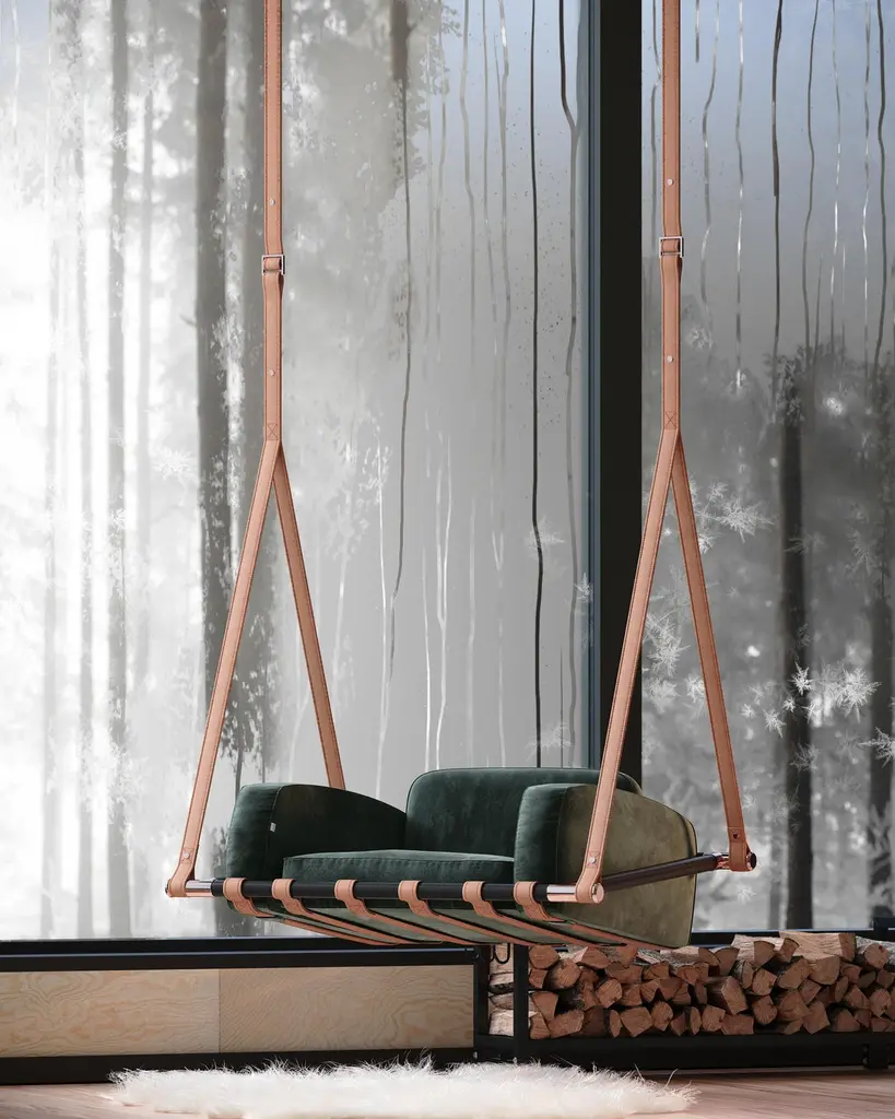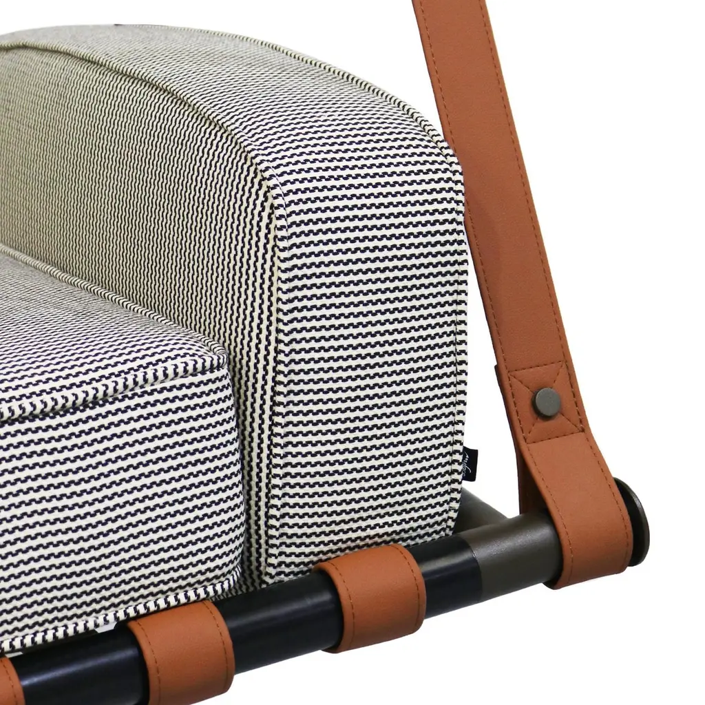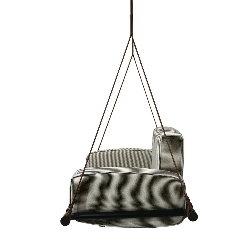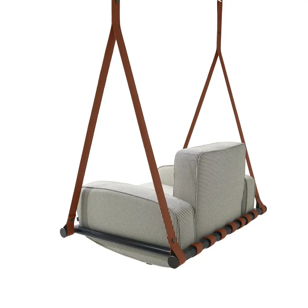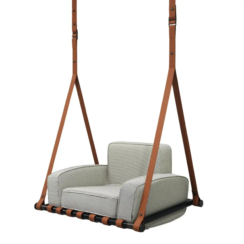 Fable Hanging ArmchairInspired by the simplicity of childhood swings, it is the perfect place to relax and relive cherished memories.Crafted with durable and resilient materials, the Fable swing is designed to withstand the demands of outdoor use, looking brand new over the years. Its soft, padded seat offers superior comfort, while its sleek and elegant design brings a sense of lightness and timeless sophistication.Hold by premium outdoor leather straps, this inviting outdoor hanging armchair will allow quality outdoor moments without any concerns.The whole design of this contemporary outdoor hanging armchair was developed according to the following structure: - Metallic details: Stainless steel;- Upholstery: Acrylic fabric;- Straps: Outdoor leather;All Myface materials are from premium suppliers, engineered to offer the best performance possible outdoors.Water, Mold, Mildew, UV and Fading resistance are some of the characteristics that you can expect from both materials, which are available in a wide array of colors and patterns.