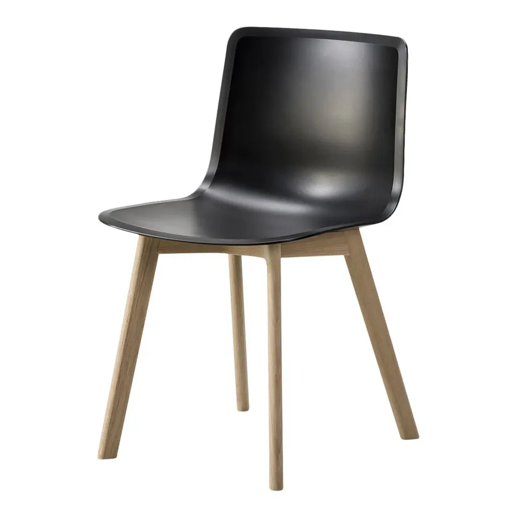 Fredericia's heritage within wooden chairs ensures the careful detailing and handcrafted feel of the Pato series. Now, the Pato range is available on a solid wood base which adds a new layer of warmth and tangibility to the series. The careful detailing of the polypropylene shell perfectly integrates with the warm and natural properties of the solid wood base. Pato Wood features a polypropylene shell with optional seat upholstery. With a solid wood base, Pato Wood radiates a warm atmosphere.