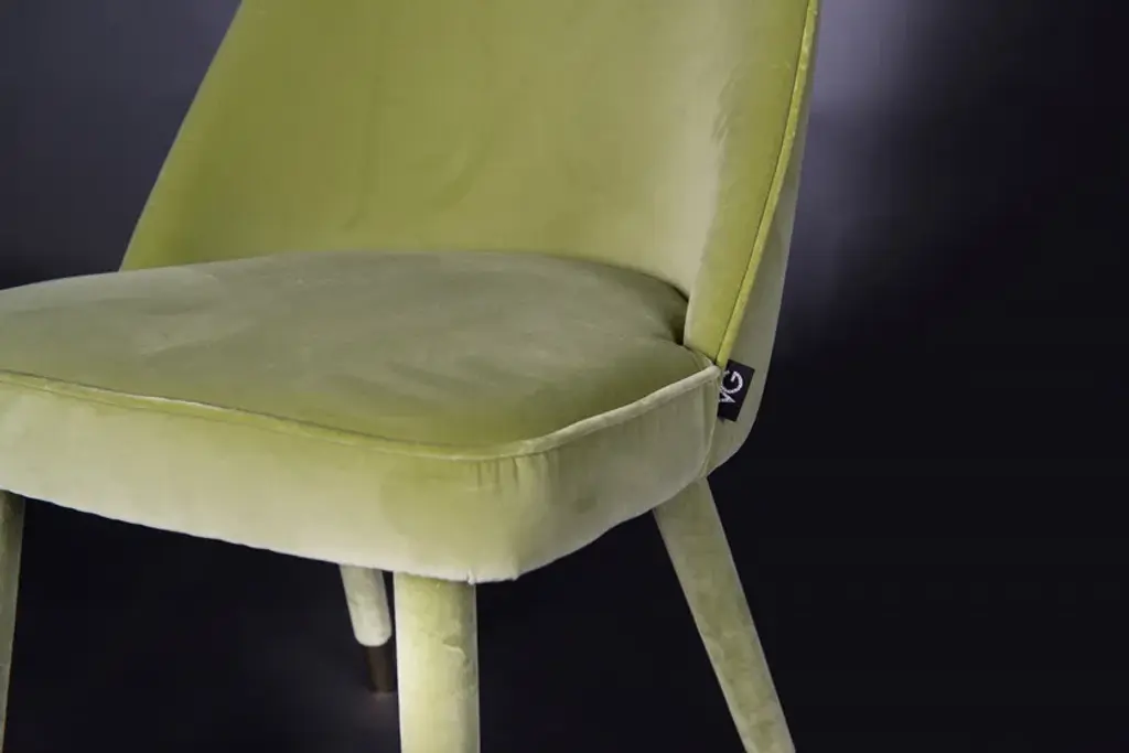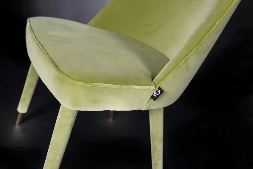 Paulette is a classic and elegant velvet chair, characterized by a comfortable upholstered seat and backrest. Structure in plywood and solid spruce. Padding in polyurethane of different densities. Feet in metal in 24k gold finish.