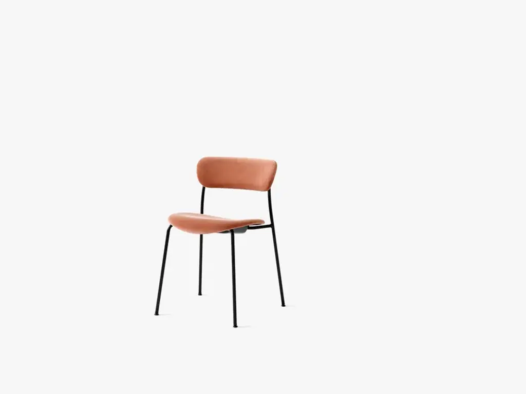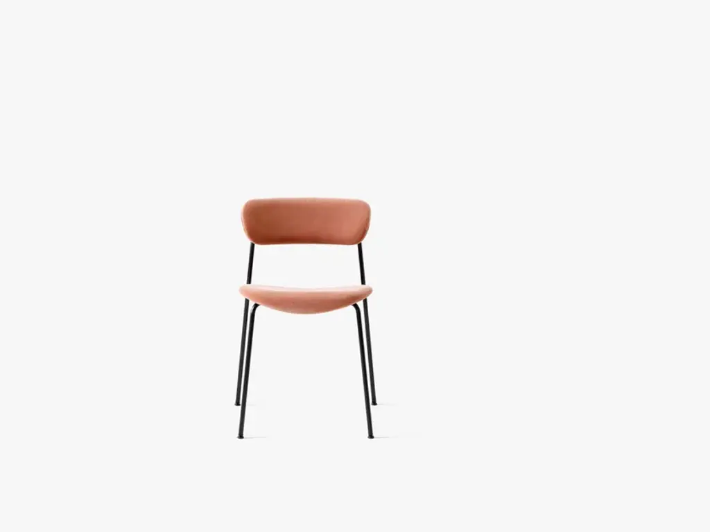Located on the castle grounds of Copenhagen’s Kastellet overlooking the waterfront promenade that is home to the Little Mermaid, The Langelinie Pavilion stands with a resilient spirit. The first Pavilion was built in 1885. Echoing its own ability to endure is the Pavilion chair by Andersen & Voll. Here the challenge was to design a stackable chair used for mass seating in this iconic, multi-purpose venue, the Langelinie Pavilion. The Pavilion chair has an airy feeling, with slim arms and legs that give it a light appearance. Now available in a contemporary chrome frame.MaterialSteel tubes and formpressed veneer, HR foam. Fabric upholsteryProduction ProcessThe chair is made from bent steel tubes and formpressed veneer. The back rest and seat are covered with HR foam for superior comfort. All chairs are equipped with an injection molded plastic stacking tray underneath the seat.UpholsteryAvailable in a variety of fabrics. Please refer to the product configurator.COM must be approved by &Tradition to ensure suitability for upholstery.Metal FinishesBlackChromeTest and CertificationsStrength, Durability and Safety TestingThe chair is tested for strength, durability and safety according to:EN 16139 Level 2 -extreme contract useManufacturerProduced in Denmark by Kvist Industries A/S