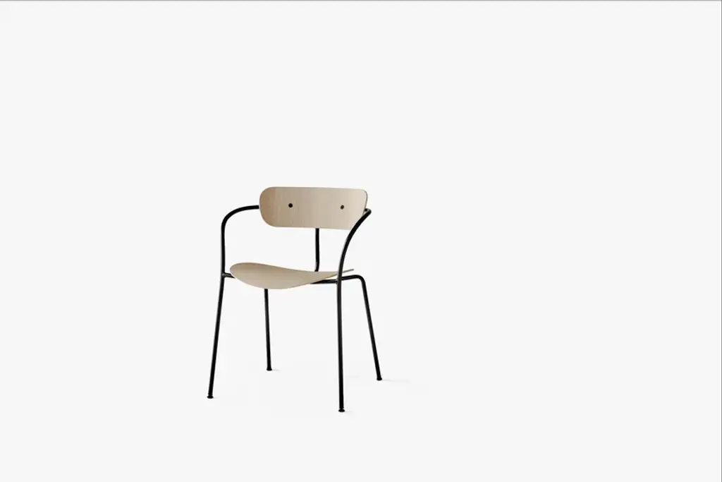 Located on the castle grounds of Copenhagen’s Kastellet overlooking the waterfront promenade that is home to the Little Mermaid, The Langelinie Pavilion stands with a resilient spirit. The first Pavilion was built in 1885. Echoing its own ability to endure is the Pavilion chair by Andersen & Voll. Here the challenge was to design a stackable chair used for mass seating in this iconic, multi-purpose venue, the Langelinie Pavilion. The Pavilion chair has an airy feeling, with slim arms and legs that give it a light appearance. Now available in a contemporary chrome frame.MaterialSteel tubes and formpressed veneerProduction ProcessThe chair is made from bent steel tubes and formpressed veneer. The veneer back and seat are finished with a PU lacquer. All chairs are equipped with an injection molded plastic stacking tray underneath the seatWood FinishesLacquered OakBlack Lacquered OakLacquered WalnutMetal FinishesBlackChromeTest and CertificationsStrength, Durability and Safety TestingThe chair is tested for strength, durability and safety according to:EN 16139 Level 2 -extreme contract useManufacturerProduced in Denmark by Kvist Industries A/S