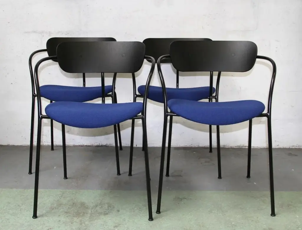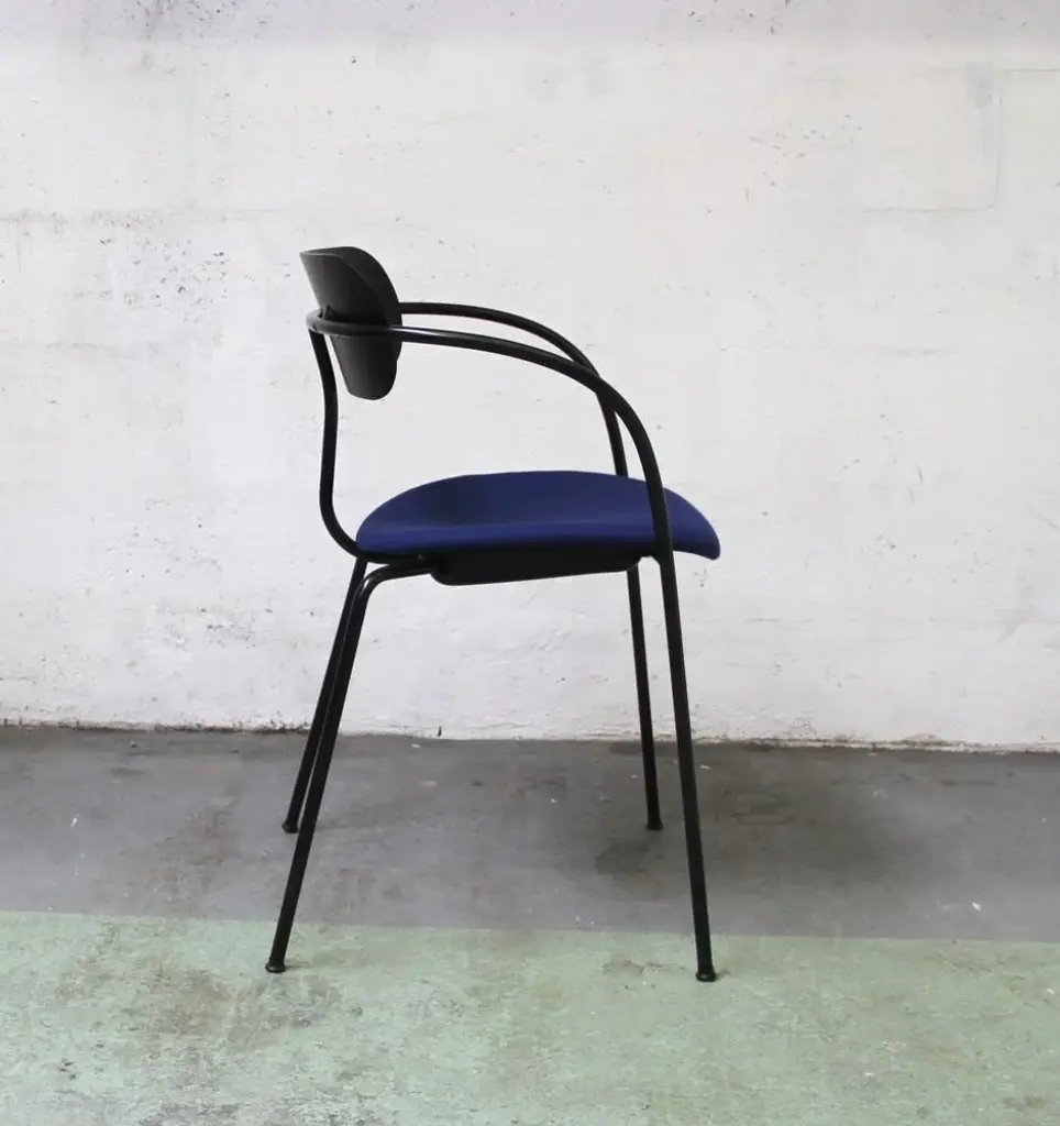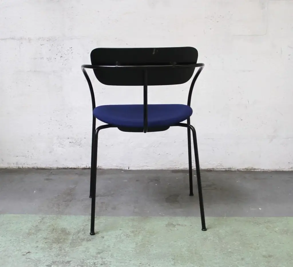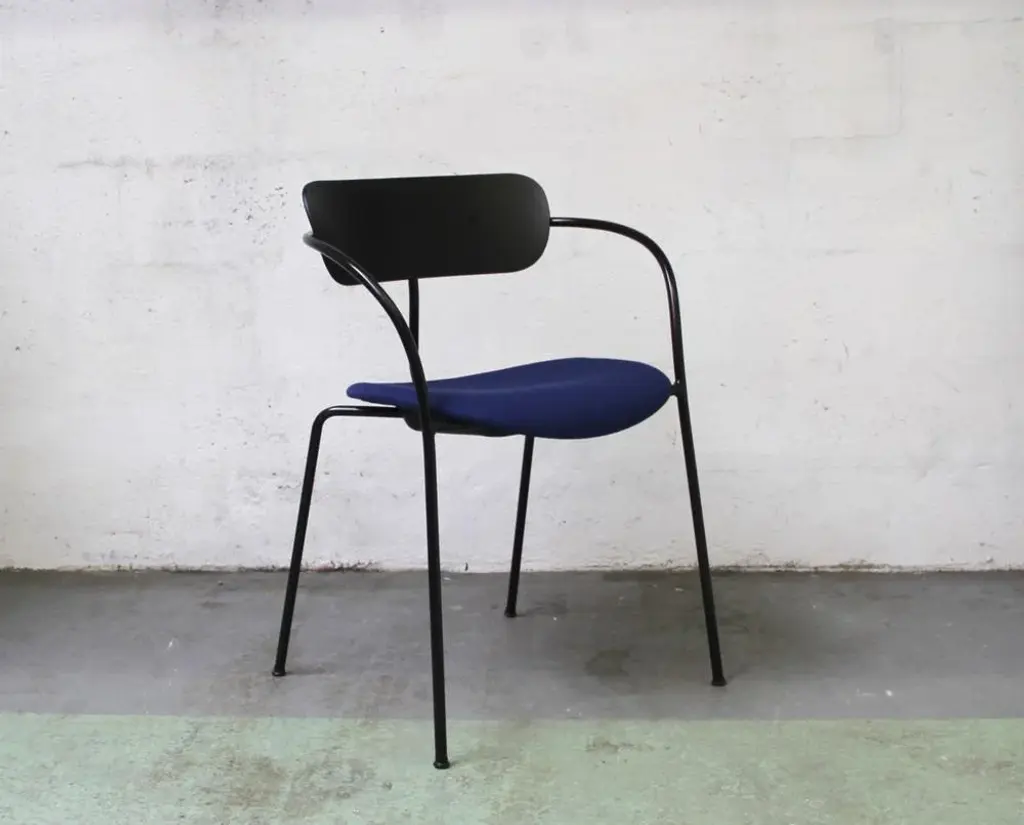 Design chair Pavilion AV4 by Anderss & Voll for & Tradition. Black tinted metal structure, with black tinted wooden backrest and padded -upholstered lounge. 45cm seat height. Perfect for all your home or office space. This piece has an attribution mark, I am sure that it is completely authentic and take full responsibility for any authenticity issues arising from misattribution