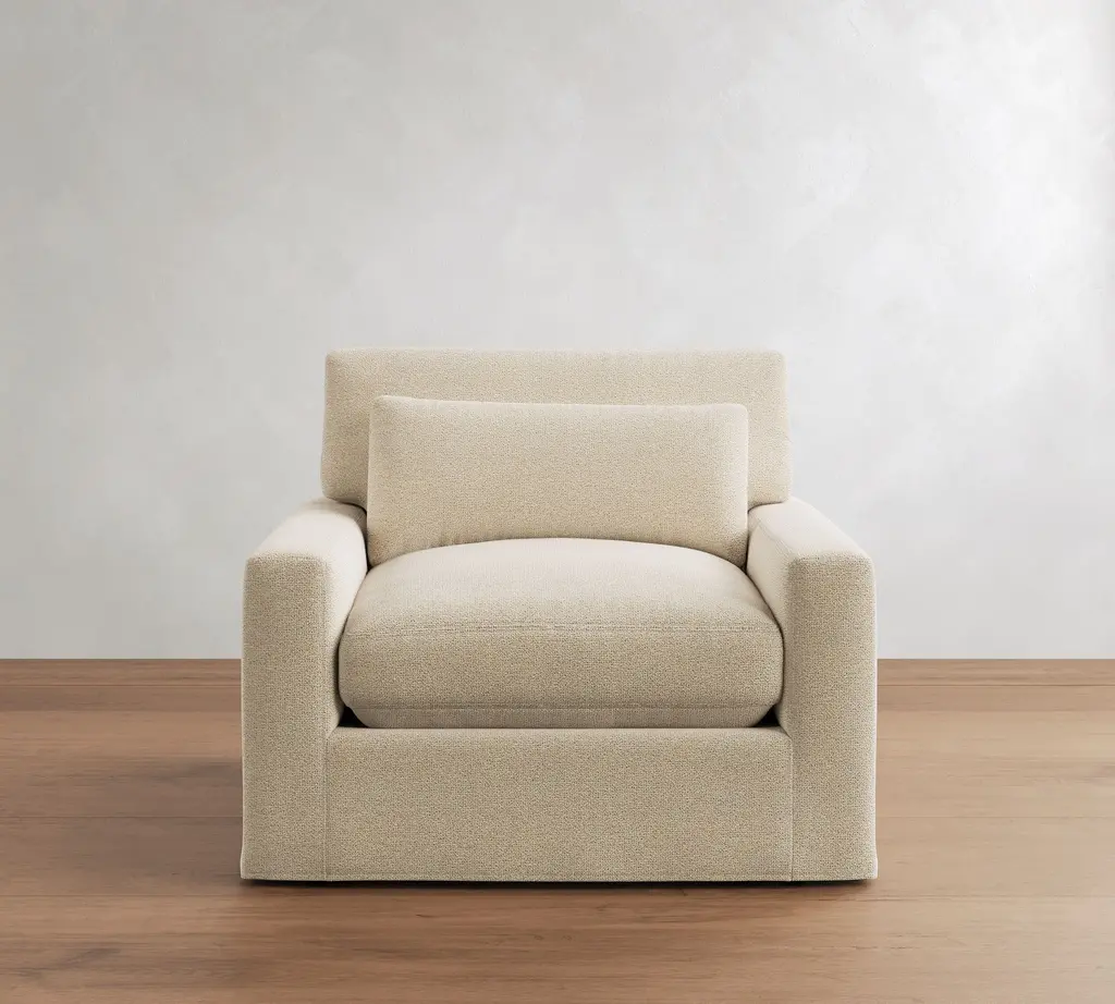 Pb Comfort Modern Deep Square Arm Slipcovered Chair And A Half