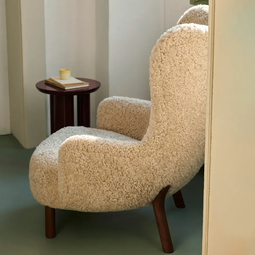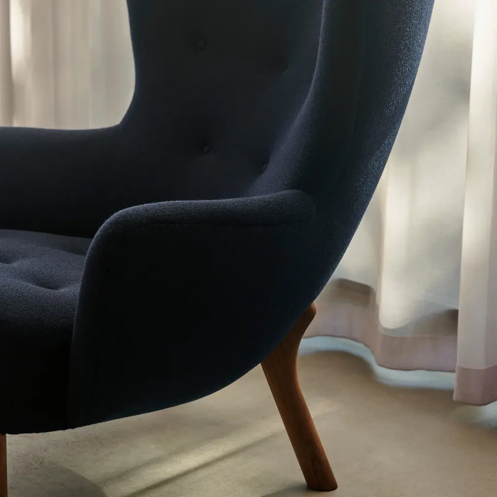 Initially introduced back in 1938, Petra won instant praise at the Copenhagen Cabinetmakers Guild Exhibition, subsequently winning awards at exhibits in New York and Berlin. It's one of just a few designs by architect Viggo Boesen, who became associated with Denmark's signature design aesthetic in the 1930s called funkis style. Distinguished by a softer, more abundant, organic aesthetic that challenged the minimalistic approach of Bauhaus. Low to the ground, open and embracing, it embodies the essence of a lounge chair, allowing for all kinds of seating positions in any cozy setting imaginable. A lot of work has gone into ensuring the utmost comfort, from the seat to the upholstery. Respecting Boesen's love of natural materials, the legs of the chair have been crafted in oak or walnut. The result is an endearing lounge chair that beckons you to stay.