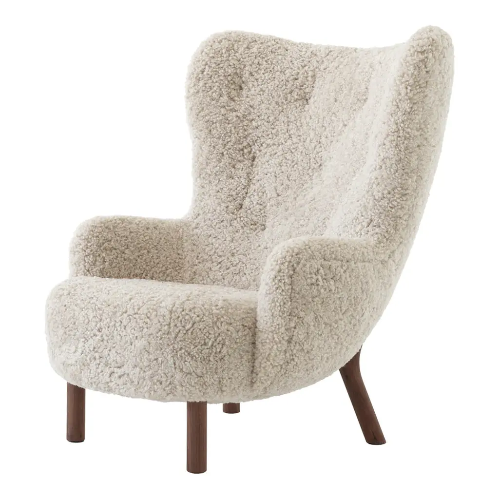 Initially introduced back in 1938, Petra won instant praise at the Copenhagen Cabinetmakers Guild Exhibition, subsequently winning awards at exhibits in New York and Berlin. It's one of just a few designs by architect Viggo Boesen, who became associated with Denmark's signature design aesthetic in the 1930s called funkis style. Distinguished by a softer, more abundant, organic aesthetic that challenged the minimalistic approach of Bauhaus. Low to the ground, open and embracing, it embodies the essence of a lounge chair, allowing for all kinds of seating positions in any cozy setting imaginable. A lot of work has gone into ensuring the utmost comfort, from the seat to the upholstery. Respecting Boesen's love of natural materials, the legs of the chair have been crafted in oak or walnut. The result is an endearing lounge chair that beckons you to stay.