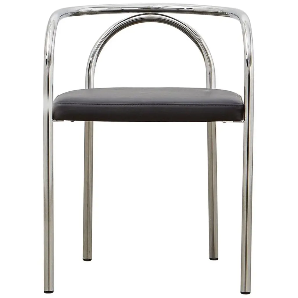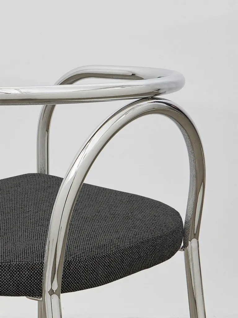 In creating the PH Chair, Poul Henningsen sought to reinvent a number of classic furniture designs that had traditionally been constructed of wood, such as the frequently encountered ‘bistro’ chair. Poul Henningsen saw an opportunity to create a next-generation product that improved upon traditional designs by the way steel was used that could allow him to create a strong and durable design that maintains a refined appearance. The PH Chair is designed in 1932, yet is timeless with its contemporary look, dynamics of shape and modern expression. It is a perfect example of Poul Henningsen’s spirit: uncomplicated simplicity. With only two bent steel tubes resting on each other at the back, this chair is aesthetically minimal but extremely functional. The PH Chair sends a clear message of elegance and functional style It is a chair for keeping focus and for having attention on the subject, whether it is to dine, to talk, to meet and discuss. The PH Chair suits many applications in many environments: at home, at work or in a public space. The PH Chair is available in chromed steel tubes and with the elegant upholstery of the seat in aniline leather in five colours (walnut, mocca, black, Indian red or un-dyed) or the exclusive Hallingdal fabric in two colors, black or grey.
