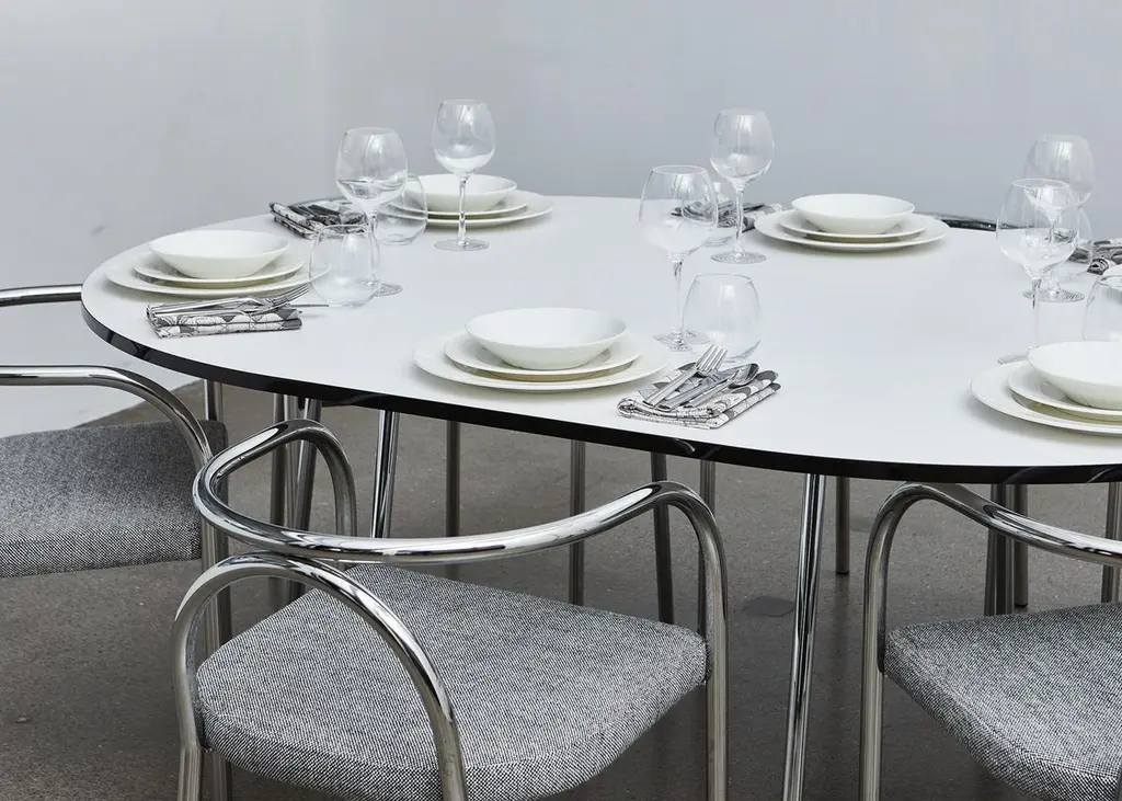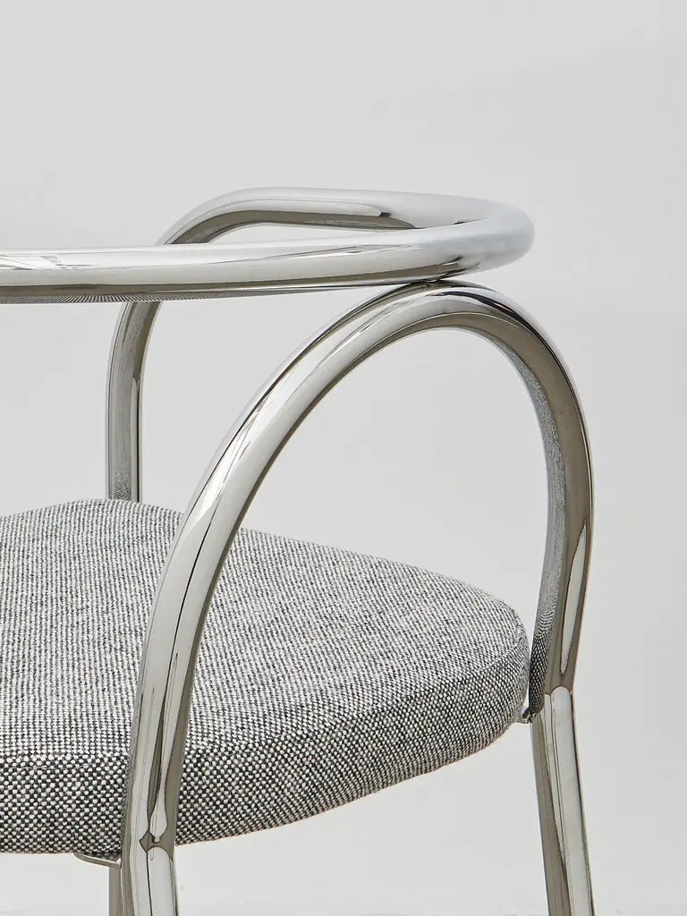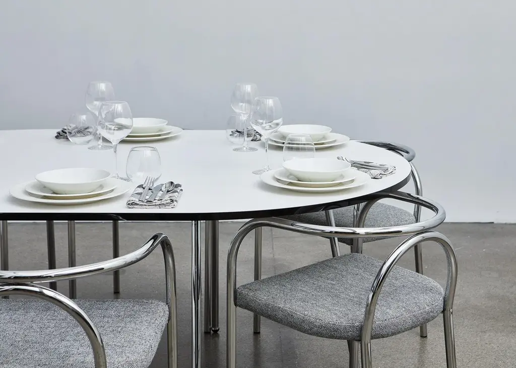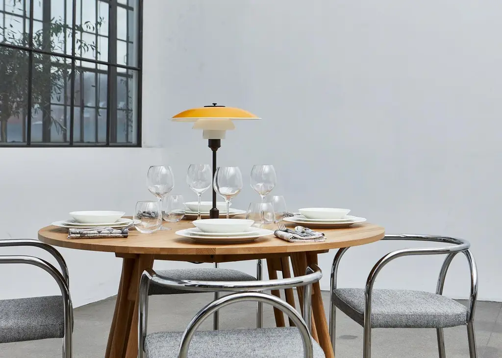 In creating the PH Chair, Poul Henningsen sought to reinvent a number of classic furniture designs that had traditionally been constructed of wood, such as the frequently encountered ‘bistro’ chair. Poul Henningsen saw an opportunity to create a next-generation product that improved upon traditional designs by the way steel was used that could allow him to create a strong and durable design that maintains a refined appearance. The PH Chair is designed in 1932, yet is timeless with its contemporary look, dynamics of shape and modern expression. It is a perfect example of Poul Henningsen’s spirit: uncomplicated simplicity. With only two bent steel tubes resting on each other at the back, this chair is aesthetically minimal but extremely functional. The PH Chair sends a clear message of elegance and functional style It is a chair for keeping focus and for having attention on the subject, whether it is to dine, to talk, to meet and discuss. The PH Chair suits many applications in many environments: at home, at work or in a public space. The PH Chair is available in chromed steel tubes and with the elegant upholstery of the seat in aniline leather in five colours (walnut, mocca, black, Indian red or un-dyed) or the exclusive Hallingdal fabric in two colors, black or grey.