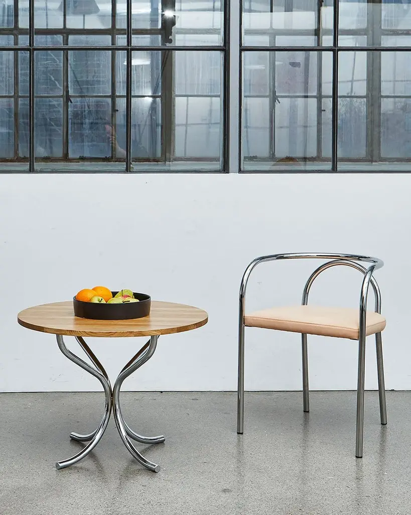 In creating the PH chair, Poul Henningsen sought to reinvent a number of Classic furniture designs that had traditionally been constructed of wood, such as the frequently encountered ‘bistro’ chair. Poul Henningsen saw an opportunity to create a next-generation product that improved upon traditional designs by the way steel was used that could allow him to create a strong and durable design that maintains a refined appearance.The PH chair is designed in 1932, yet is timeless with its contemporary look, dynamics of shape and modern expression. It is a perfect example of Poul Henningsen’s spirit: uncomplicated simplicity.With only two bent steel tubes resting on each other at the back, this chair is aesthetically minimal but extremely functional. The PH chair sends a clear message of elegance and functional style it is a chair for keeping focus and for having attention on the subject, whether it is to dine, to talk, to meet and discuss.The PH chair suits many applications in many environments: at home, at work or in a public space. The PH chair is available in chromed steel tubes and with the elegant upholstery of the seat in aniline leather in five colors (walnut, mocca, black, Indian red or un-dyed) or the exclusive Hallingdal fabric in two colors, black or grey.