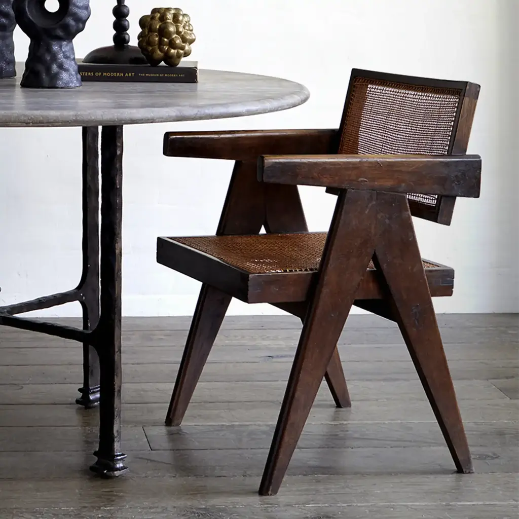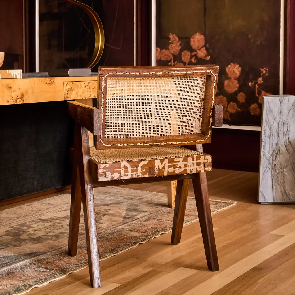 Bring a piece of design history into your home with these authentic Jeanneret Dining Chairs, handcrafted in Chandigarh, India. These iconic chairs, originally designed by Swiss architect Pierre Jeanneret in the 1950s for the city of Chandigarh, embody a timeless blend of modernist form and artisanal craftsmanship.