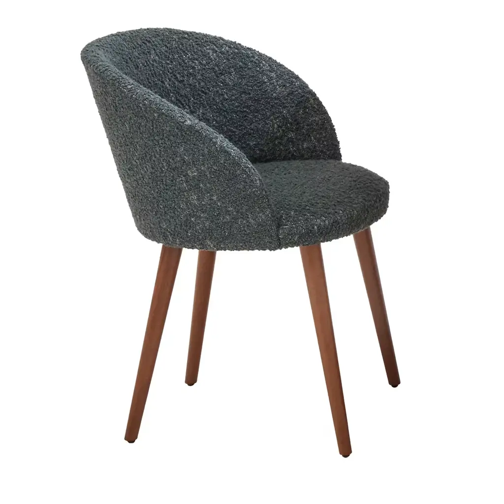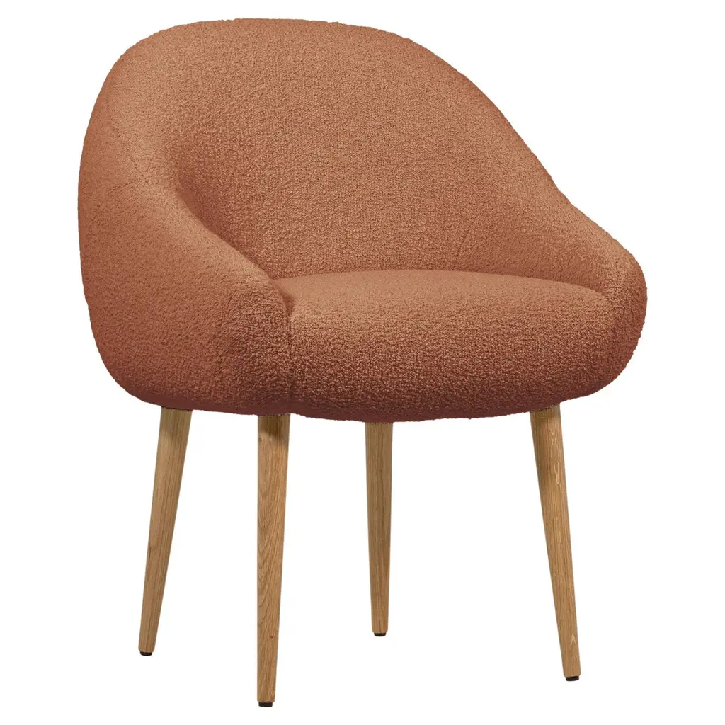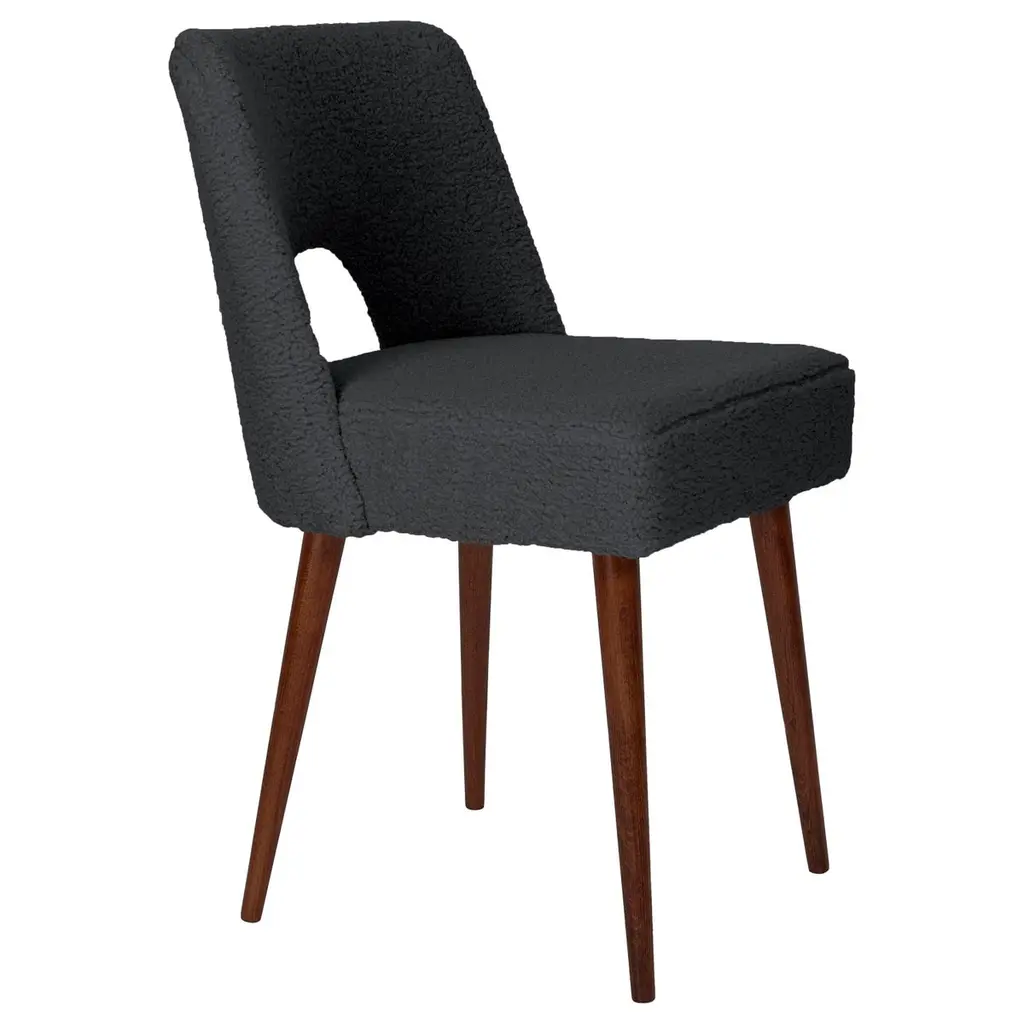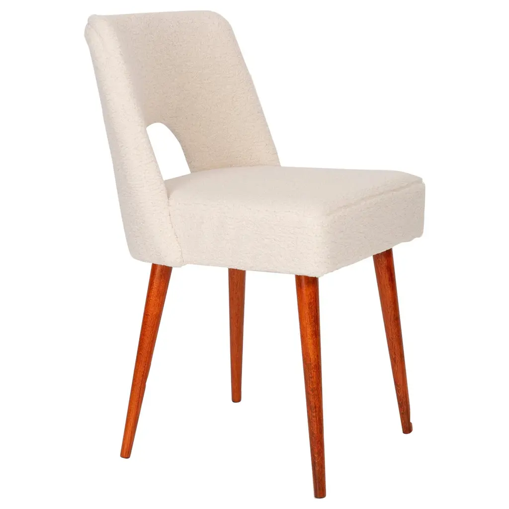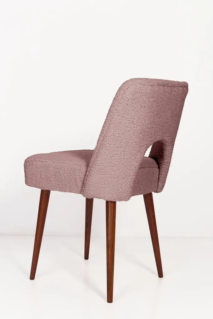 Beautiful chair type 1020 colloquially called "shell" produced by the Slupsk centre of furniture industry in the 1960s in Poland. They are after full renovation upholstery and carpentry. Seat and back is dressed in pink, durable and pleasant to the touch bouclé fabric. We can prepare this chair in every color of wood and fabric also in bigger sets. Please check the last picture with boucle color samples.