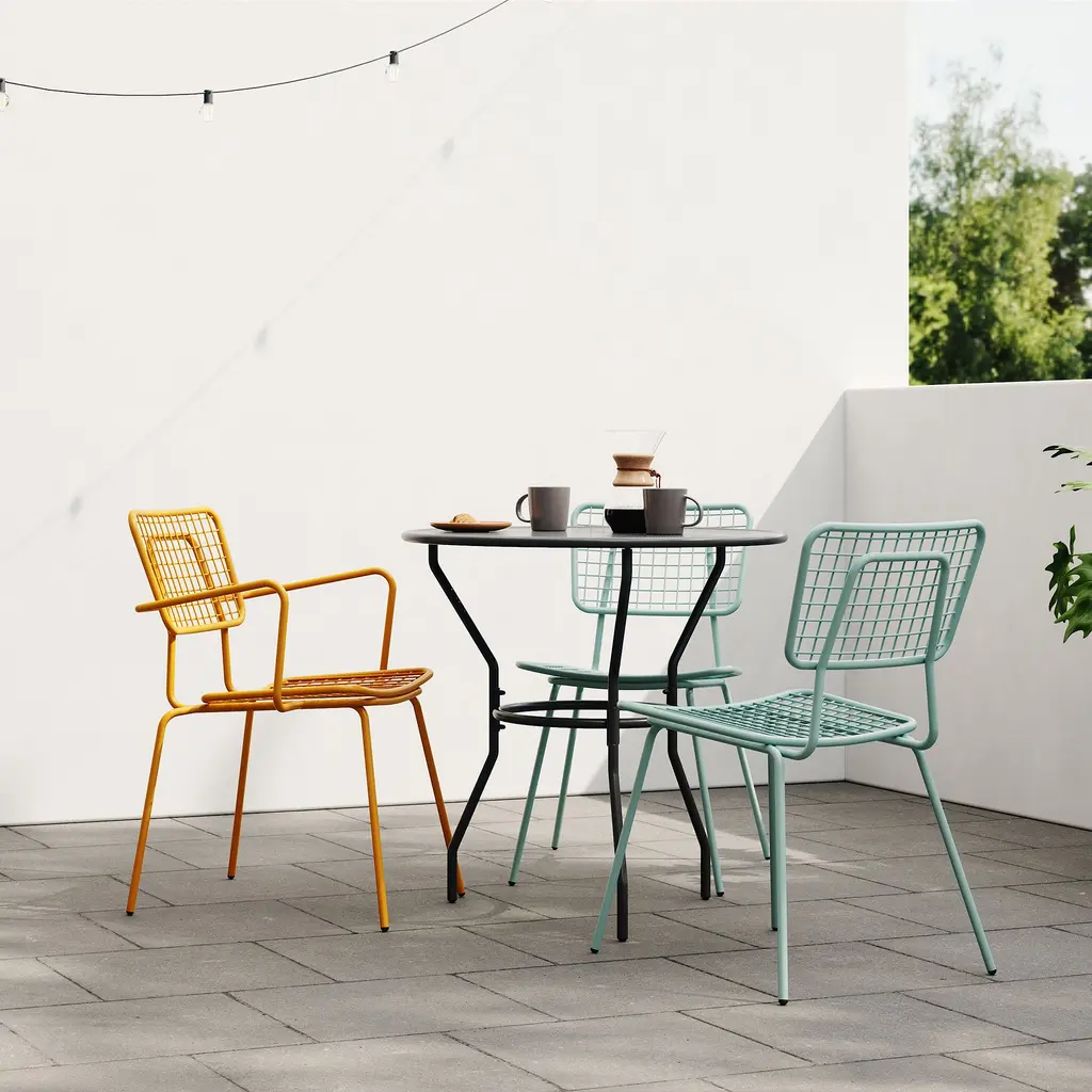 Stacking chair.Also available with arms. Material: frame in aluminium tube painted in polyester powder. Seat and back in beech plywood.