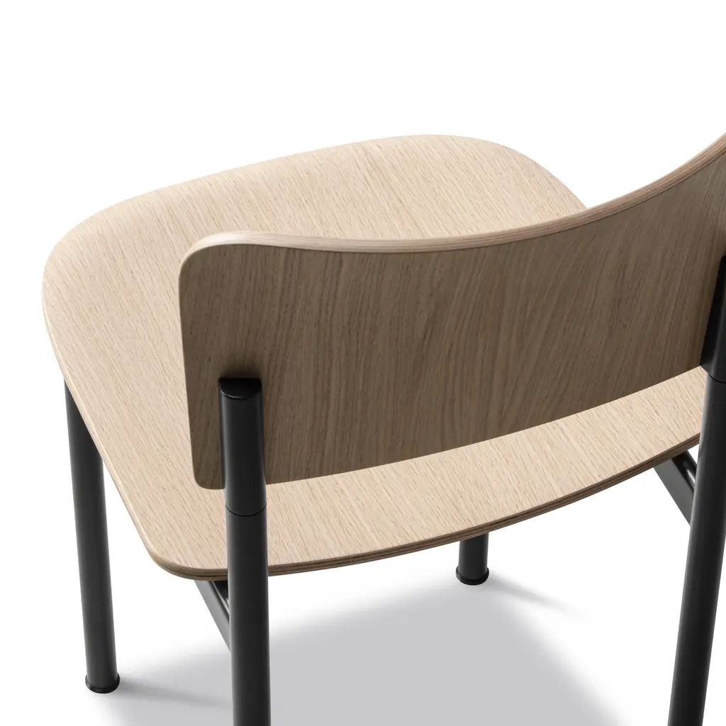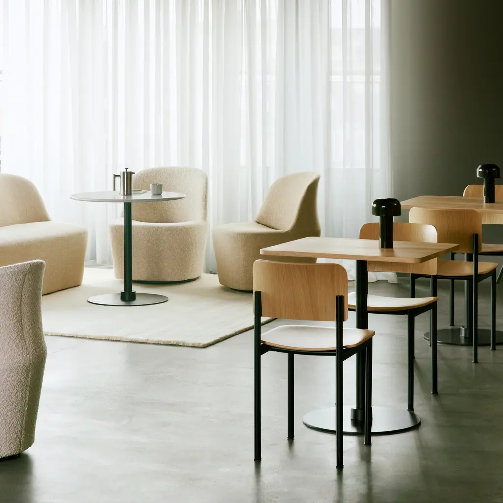 With its surprisingly minimal footprint and generous comfort, Plan is ideal for a variety of uses—in hospitality spaces, the flex-workplace and everyday in the home. Barber & Osgerby’s chair features a plywood veneer seat and back finished with water-based lacquer and a powder-coated tubular steel frame in black, Bordeaux or Modernist green.