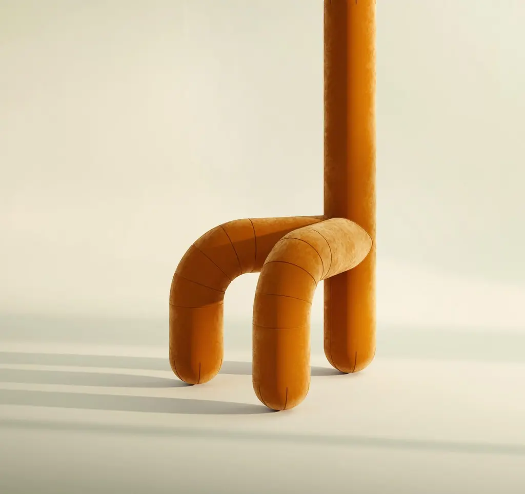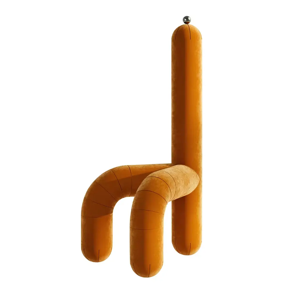 Playful H Shape Orange Velver High Backrest Chair By Pietro Franceschini