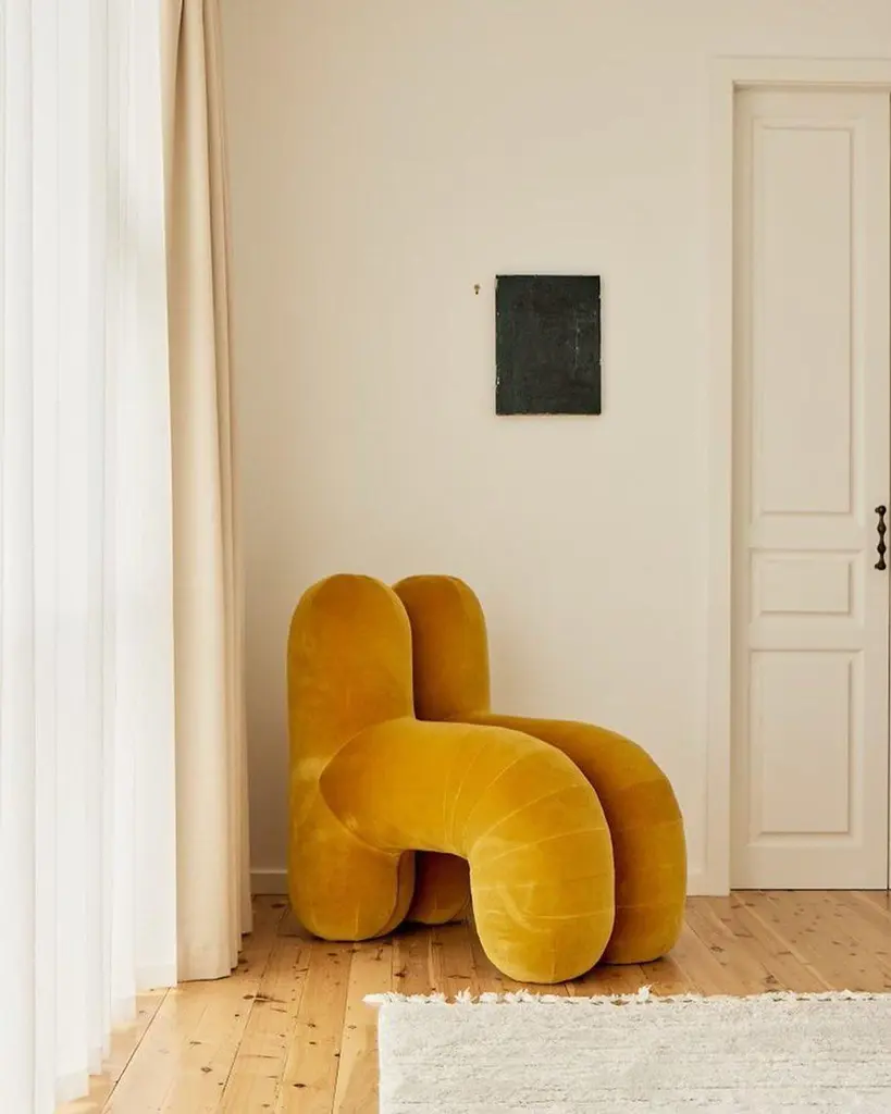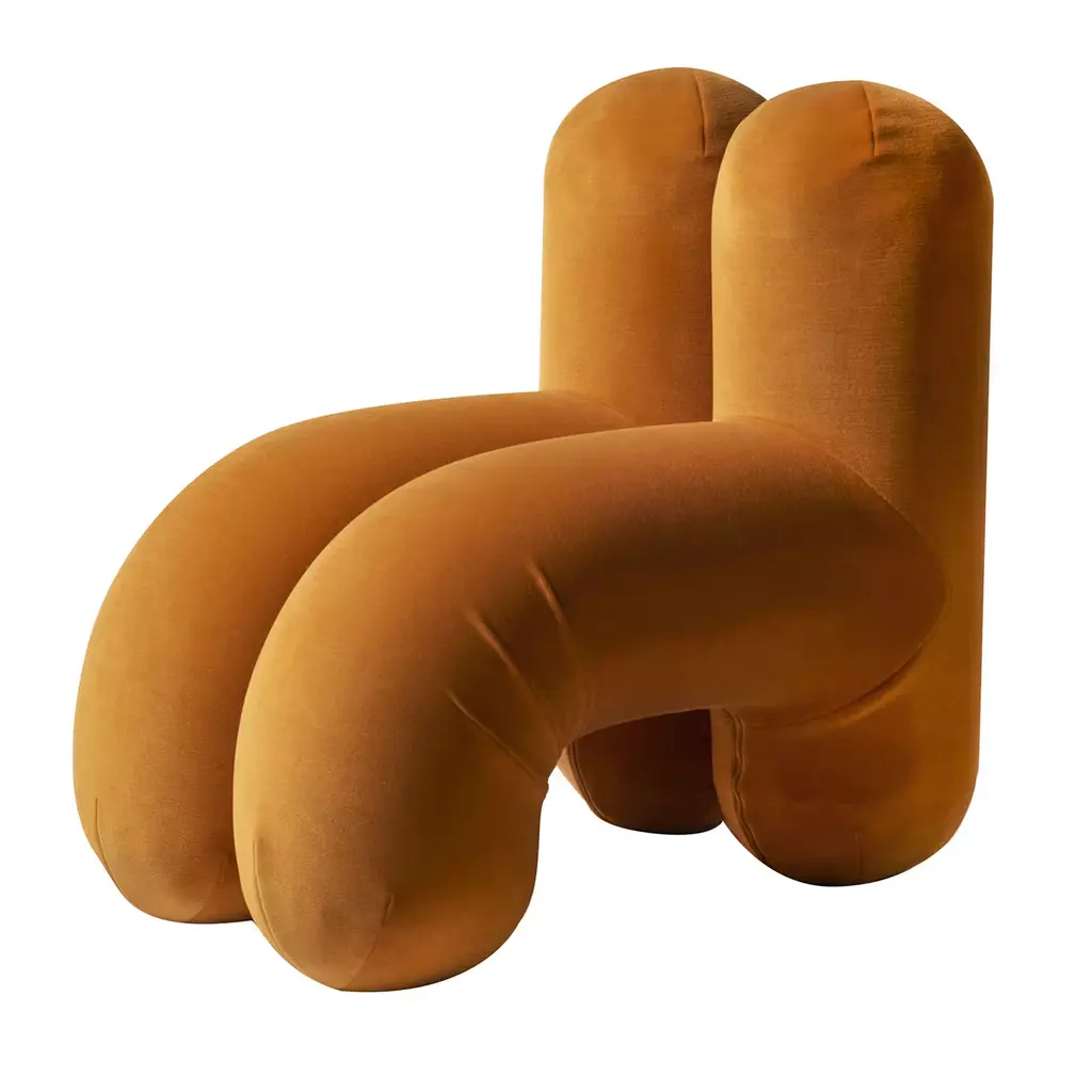 Playful H Shape Orange Velvet Chair With Two Backrests By Pietro Franceschini