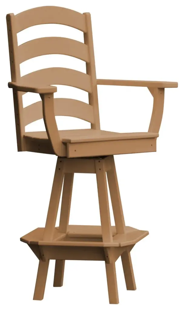 Poly Lumber Ladderback Swivel Bar Chair With Arms, Cedar