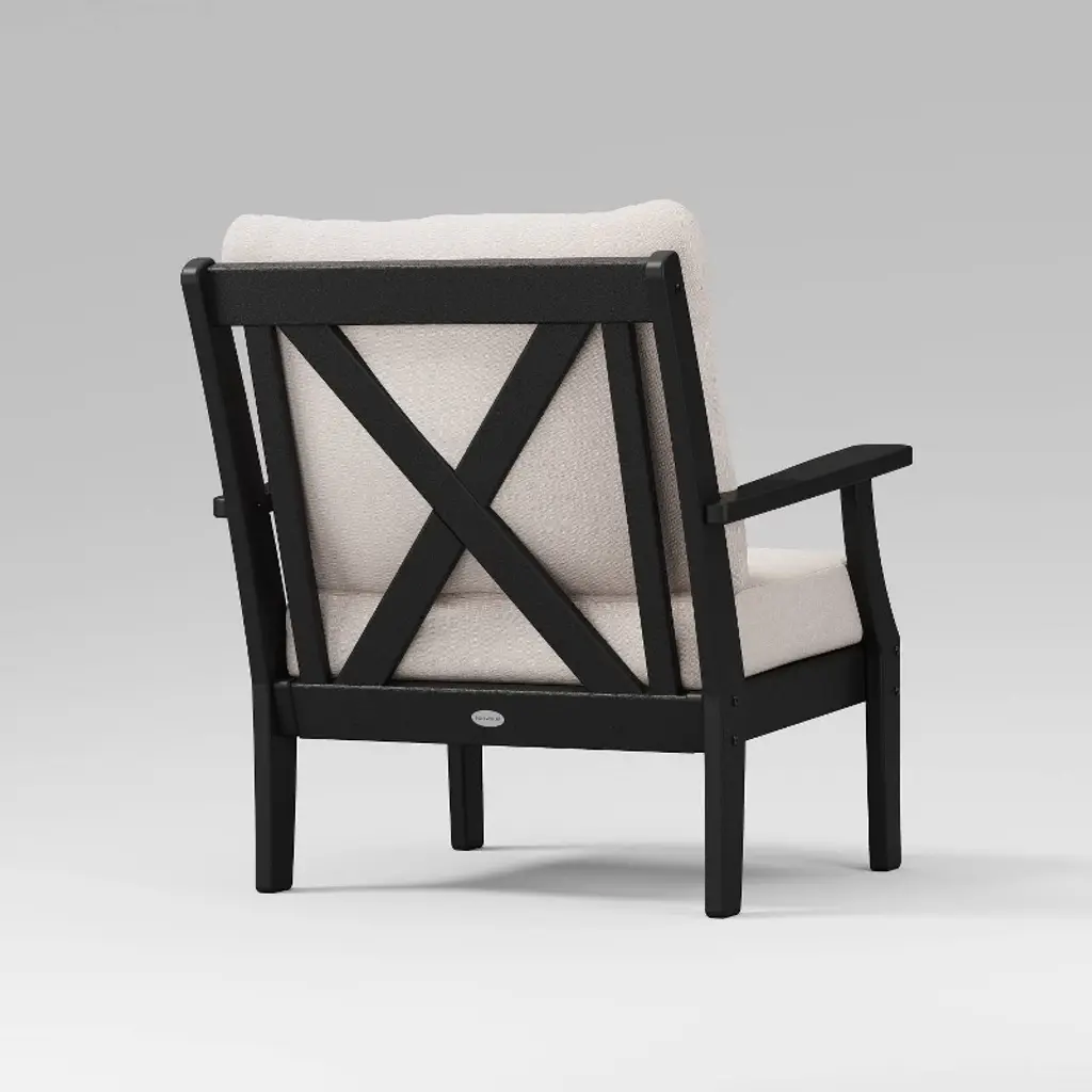 The Braxton Deep Seating Patio Chair by POLYWOOD strikes the perfect balance between urban and rustic. With a reclined backrest that features an eye-catching X-back design and soft, weather-resistant cushions, this all-weather chair provides style and comfort in your outdoor space. Create a relaxation-ready nook by grouping a few deep seating chairs with coordinating pieces from the Braxton Collection.