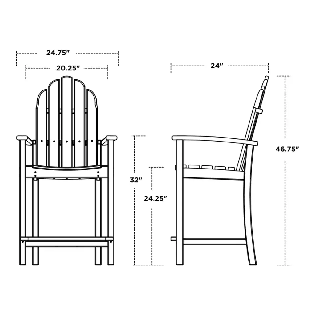 The Adirondack counter height chair gives you a whole new perspective without sacrificing the comfort you expect from this traditional style. Polywood furniture is constructed of solid Polywood lumber that's available at a variety of attractions.