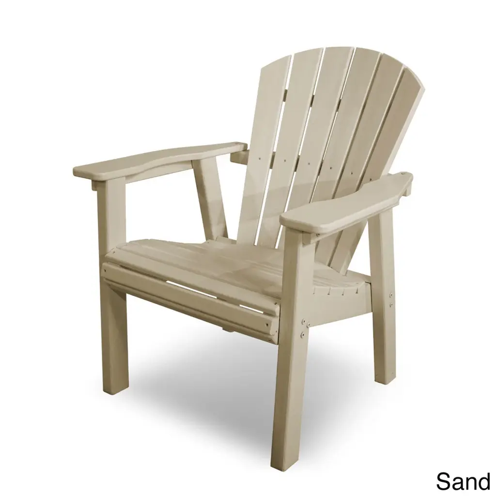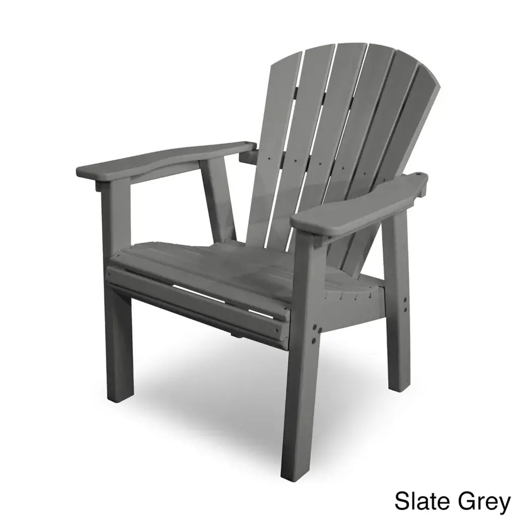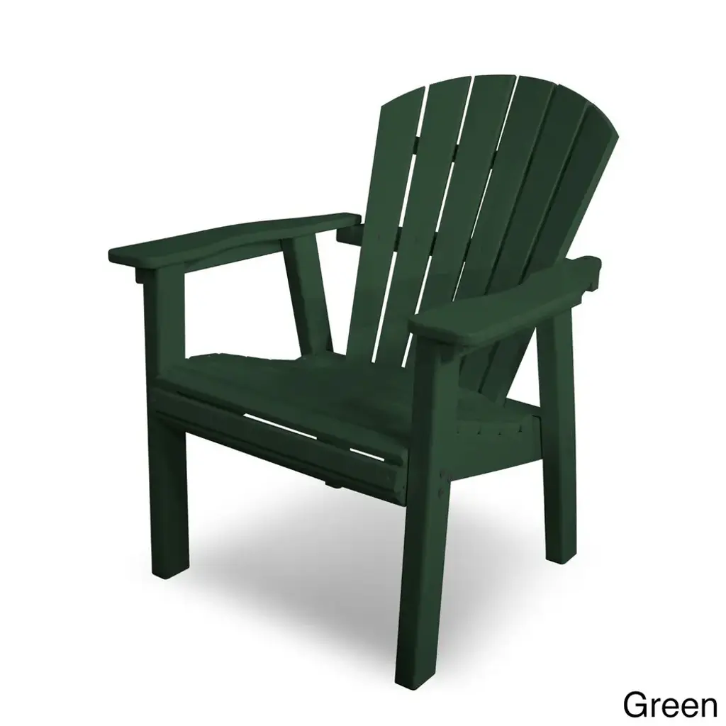 While away the time with this casual chair. Crafted from high-density polyethylene, this chair is resistant to cracking, splintering, and chipping for enduring appeal. Show your environmental responsiveness with this eco-friendly chair. Eco-friendly product made with recycled materials Marine Grade Hardware Marine Grade Hardware Easy to clean with soap and water Set includes: 1 Chair Color: Black,Green,Slate Grey,Mahogany,Sand,Teak,White, Materials: High-density Polyethylene Finish: Black,Green,Slate Grey,Mahogany,Sand,Teak,White, Weather-resistant UV protection Weight capacity: 300 Dimensions: 27.75D x 27.00"W x 35.75H Weight: 35Assembly RequiredNote: POLYWOOD products are built-to-order in the USA. We're working hard to build and ship orders as quickly as possible.