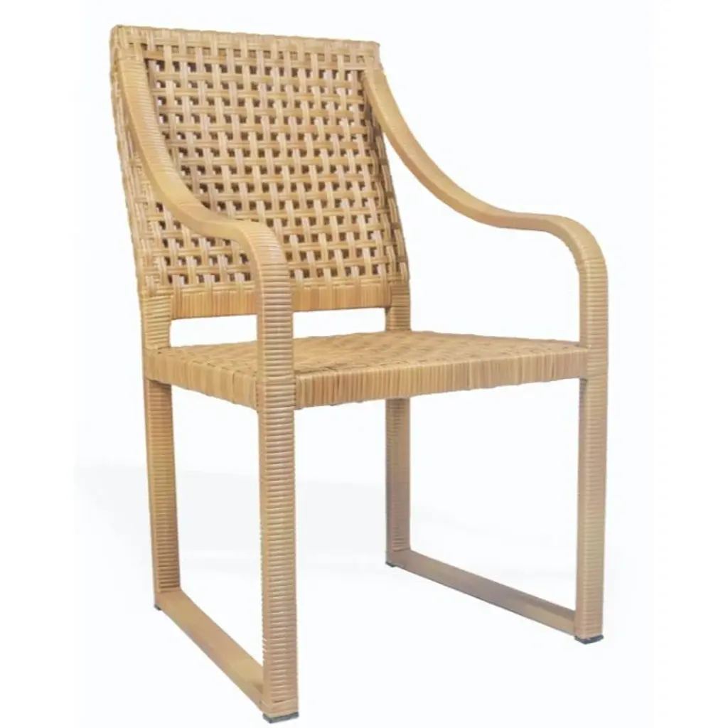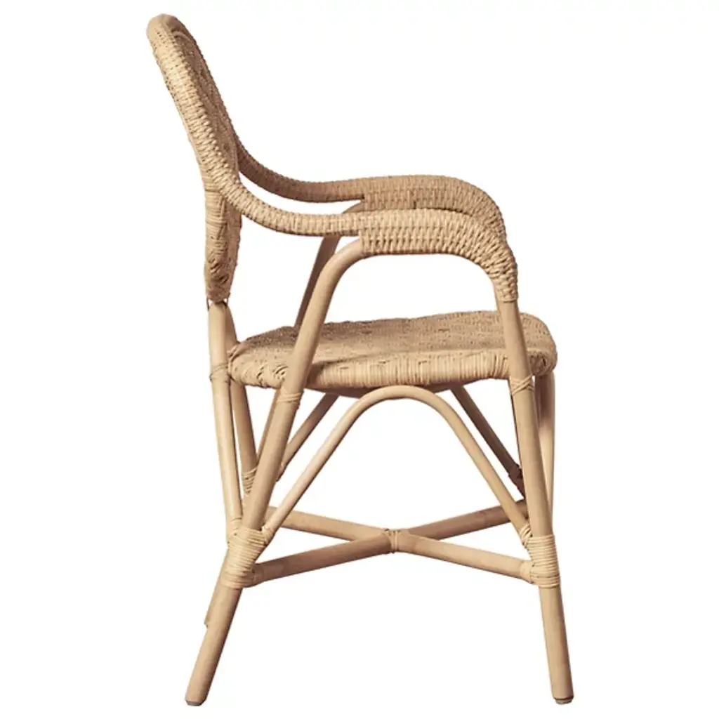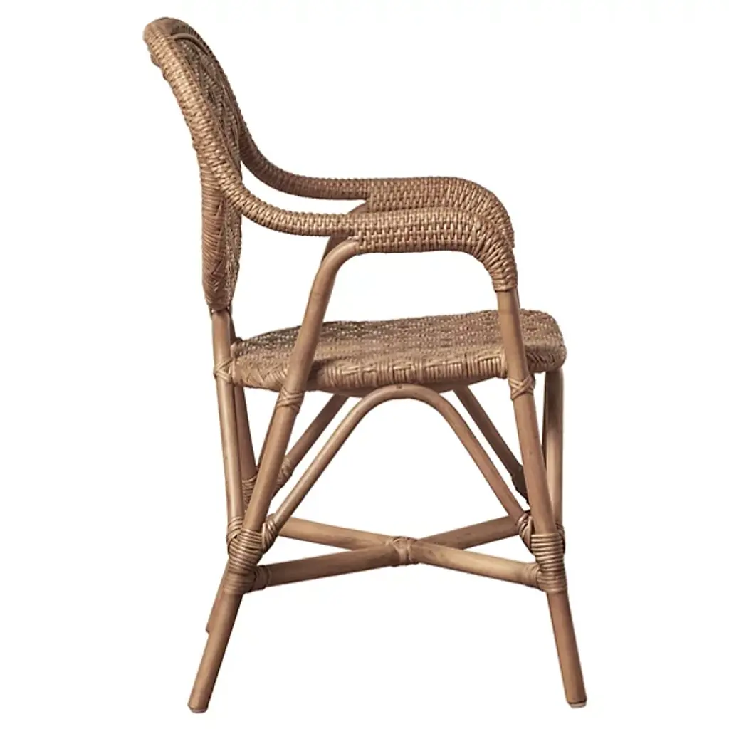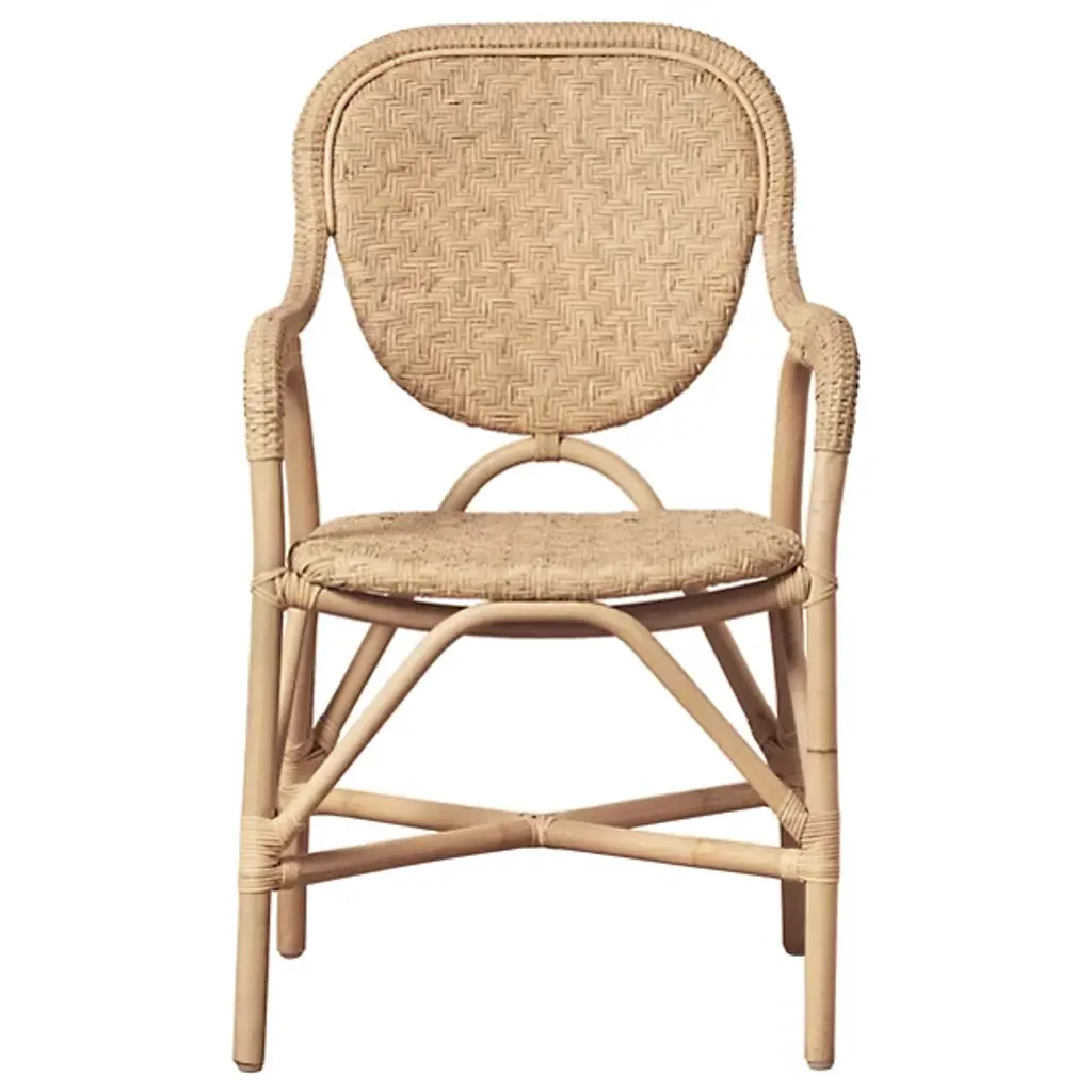 Inspired by the sun-soaked charm of the Mediterranean, the Portofino Arm Chair from Woven offers a stylish twist on the classic bistro chair. Each seat is made from sustainably harvested rattan, which is steamed, shaped, and woven by skilled artisans in Indonesia. Its natural material develops a unique patina with time and use, adding character and a lived-in elegance. Perfect for indoor or covered outdoor settings, the subtle curves and supportive natural material bring casual sophistication to any space.