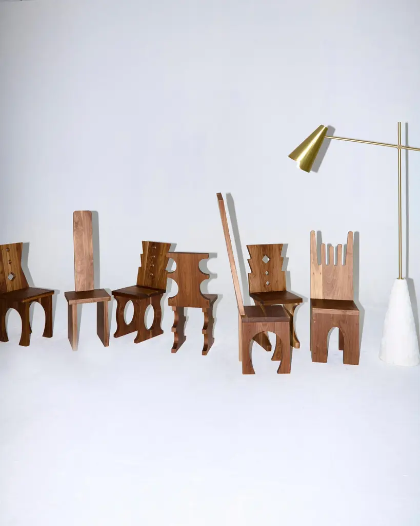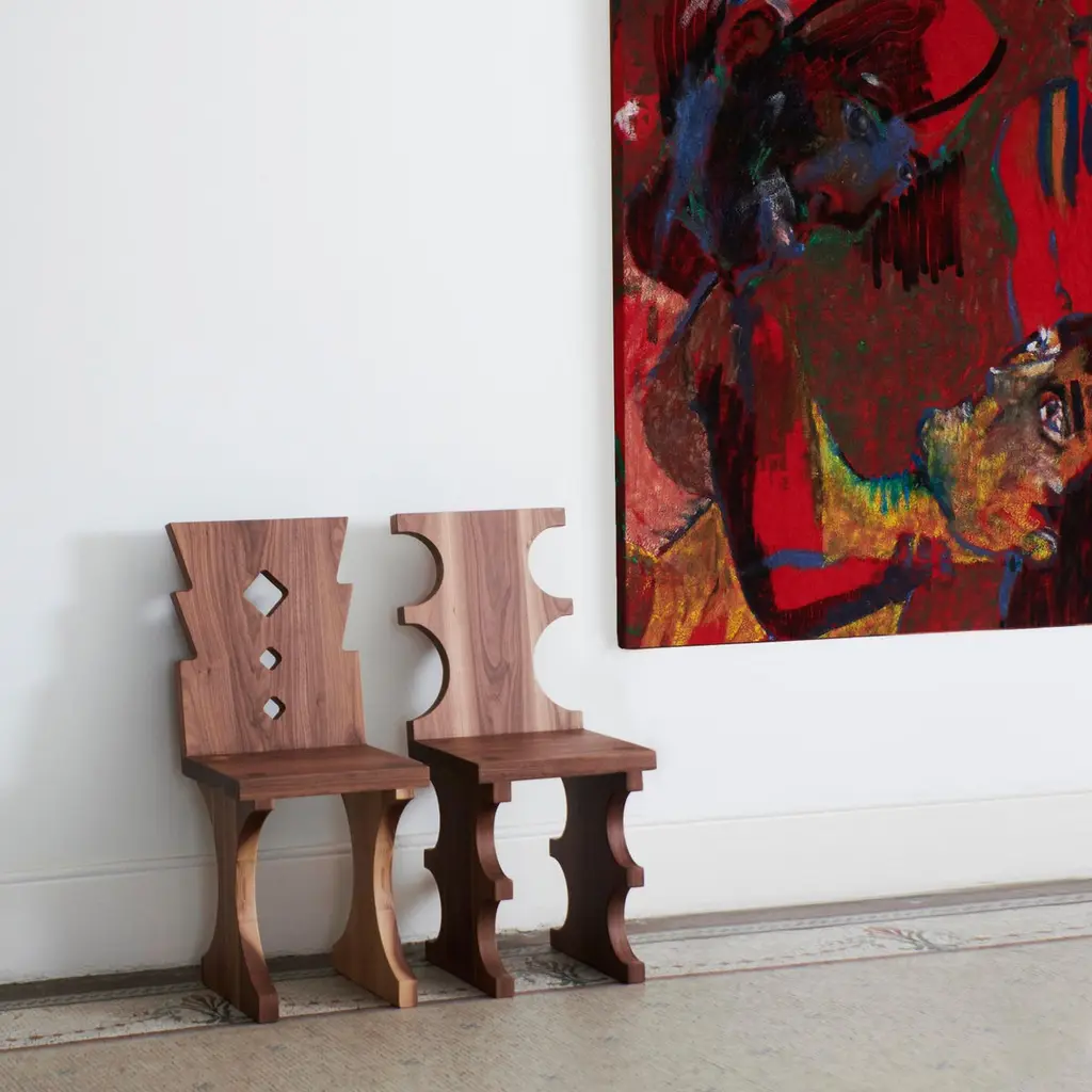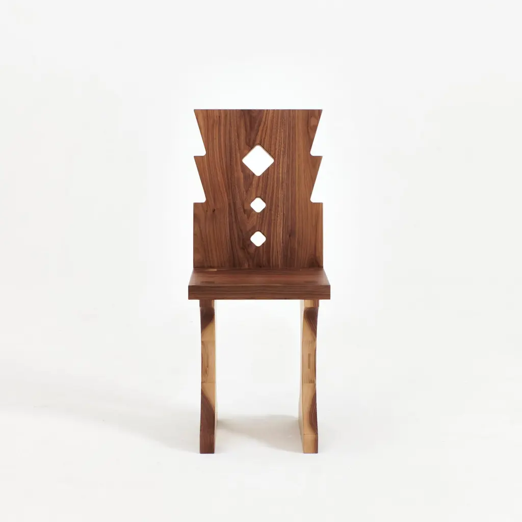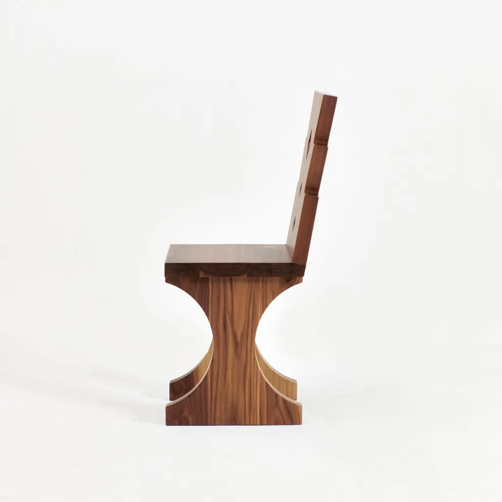 Portugal Chair No6, designed in 2024This chair is part of a series with eight different designs with a graphic shaped backrest and structural legs.Hand-carved in solid walnut by skilled artisans in Northern Portugal.Made to order. Production lead time: 8-12 weeksWood is a natural material that can vary slightly in tone, appearance and may show some imperfections over time, this makes each piece unique.