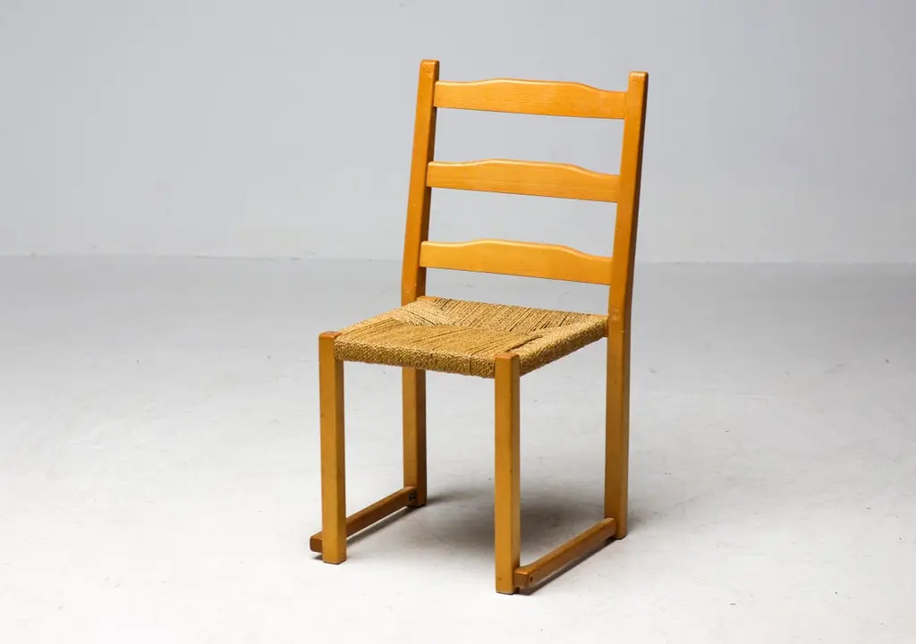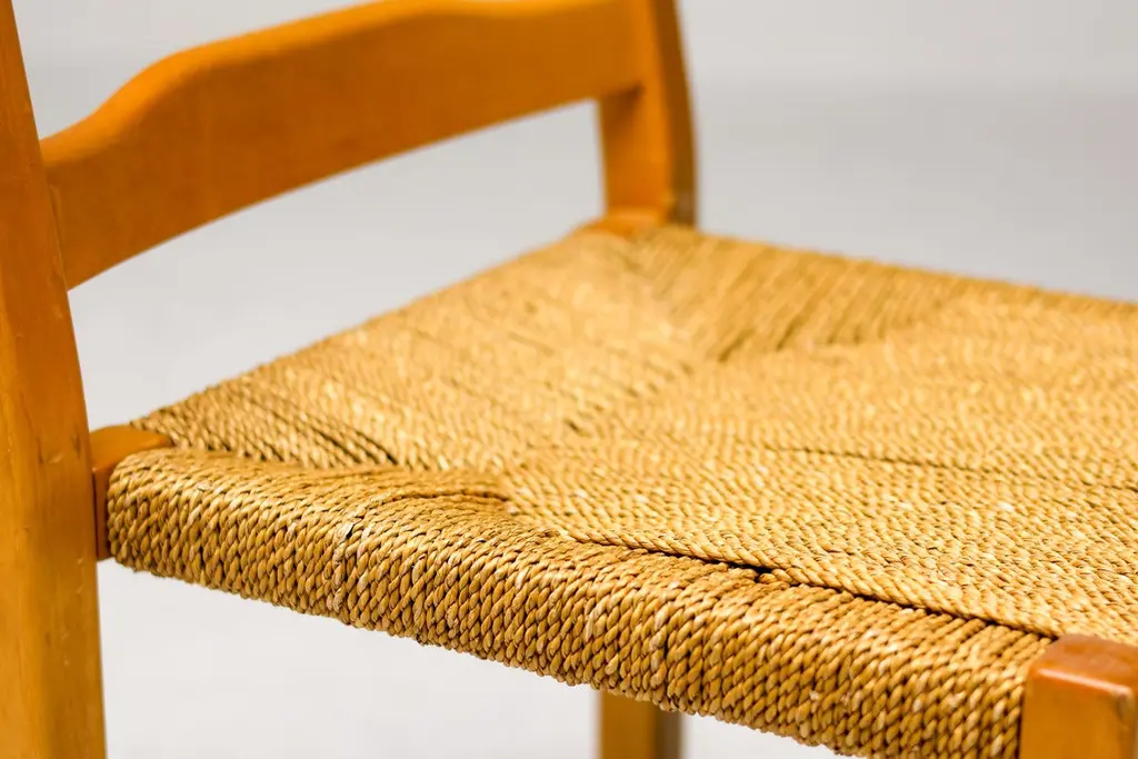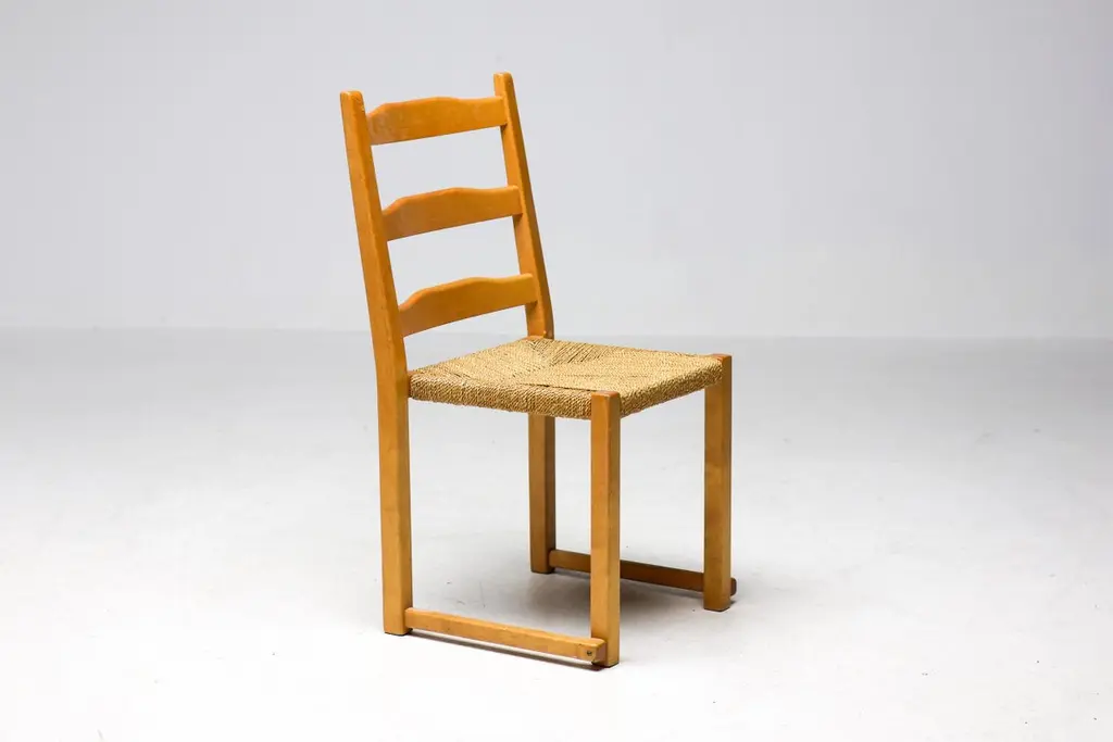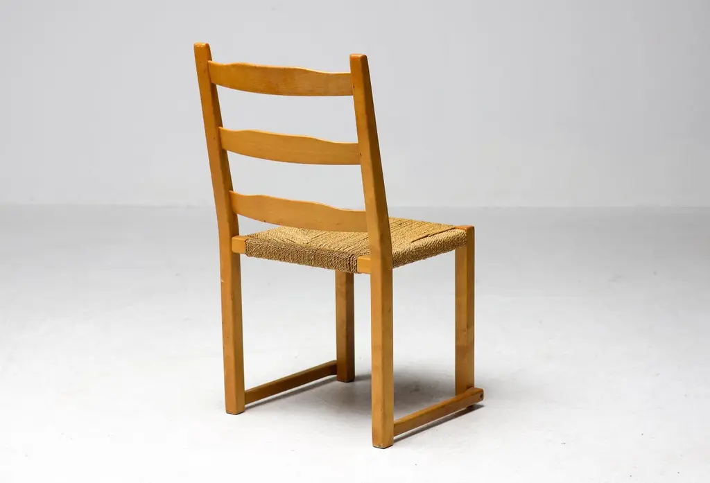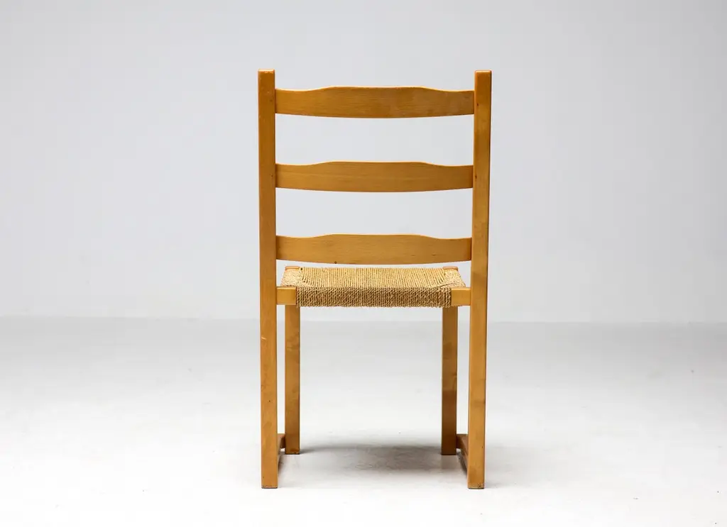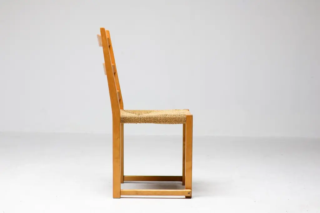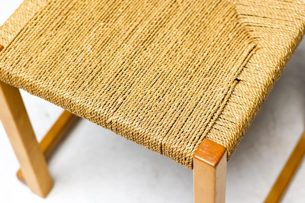 Elegant and very practical stacking chairs in lacquered ash and rope, designed by Poul Volther and manufactured circa 1960 by Gemla, Sweden.These chairs would give any restaurant a Scandinavian minimalist "Noma" vibe.We currently have 19 of these chairs in stock, all chairs are in wonderful vintage condition.Priced individually.