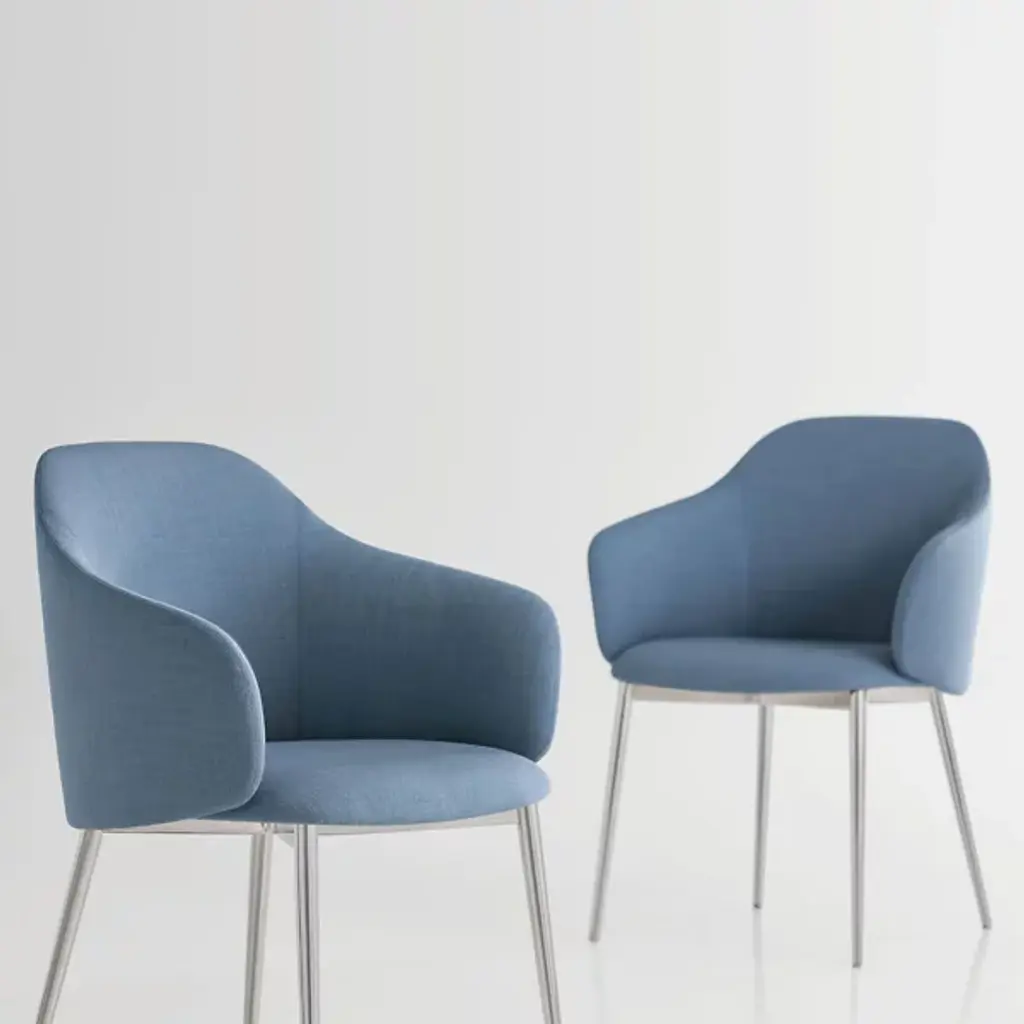 The Prelude Arm Chair from Bernhardt Design embraces flowing contours that create an inviting profile reminiscent of draped fabric. Created by Claudia & Harry Washington, this metal-based seating option balances compact scale with generous comfort, making it suitable for various professional environments. The chair's organic lines flow naturally from the seat to the backrest, while its molded foam construction provides both structural integrity and user comfort. The polished aluminum base supports the upholstered shell with clean geometric precision, creating a piece that bridges industrial materials with soft, approachable forms.